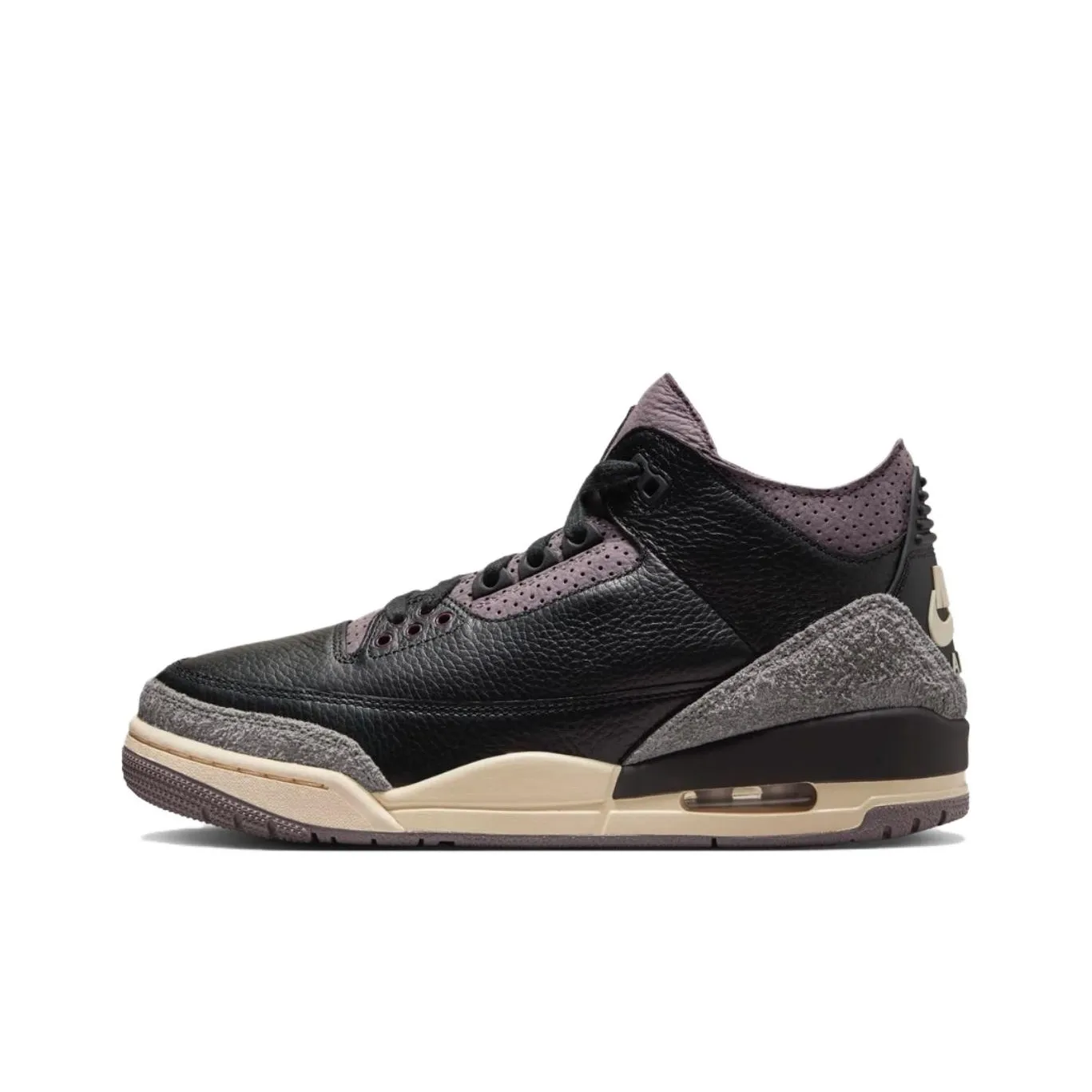 For the A Ma Maniere X Air Jordan 3 'Black', inspect the leather upper for quality. Authentic pairs will have a smooth, premium leather finish with precise stitching. The black color should be deep and consistent, and the rubber sole must be durable and well-constructed.