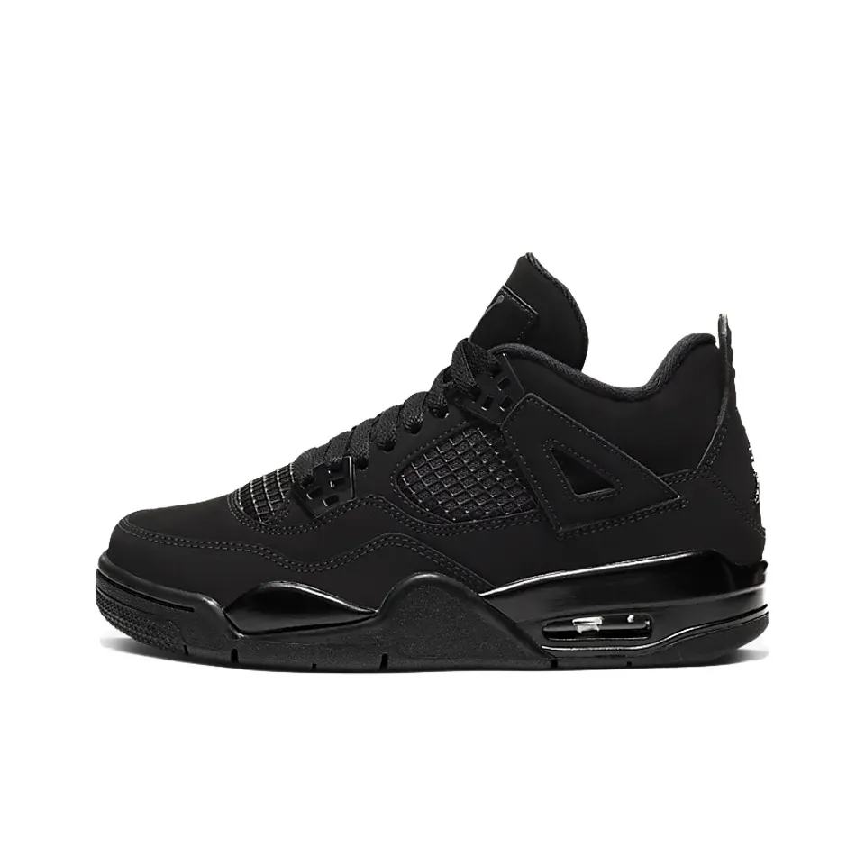 For the Jordan 4 Retro Black Cat 2020 GS, inspect the leather quality and overall finish. Authentic pairs will feature high-grade leather that feels soft yet durable. The black color should be uniform, with no variations or imperfections. The shoe's shape should be consistent with official images, and the sole should have a solid rubber feel.