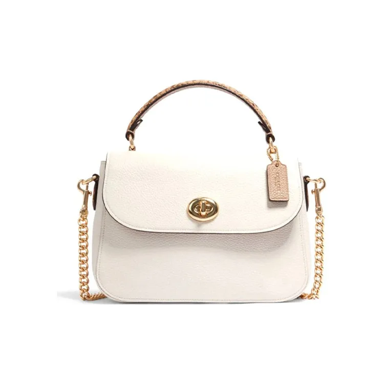 For the COACH Marlie Handbags, inspect the medium size and the solid color scheme. Authentic bags will have a smooth texture and the white color should be vibrant. The zip pocket should function smoothly, indicating quality craftsmanship.