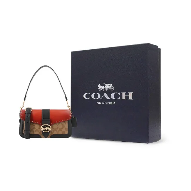 To authenticate the COACH Georgie Canvas With Refined Cow Leather Box Bag, examine the stitching and the quality of the canvas. Authentic bags will have even stitching and no frayed edges. The color block design should be vibrant and consistent, and the studs should be securely attached. The overall feel of the bag should be luxurious, reflecting the high standards of COACH.