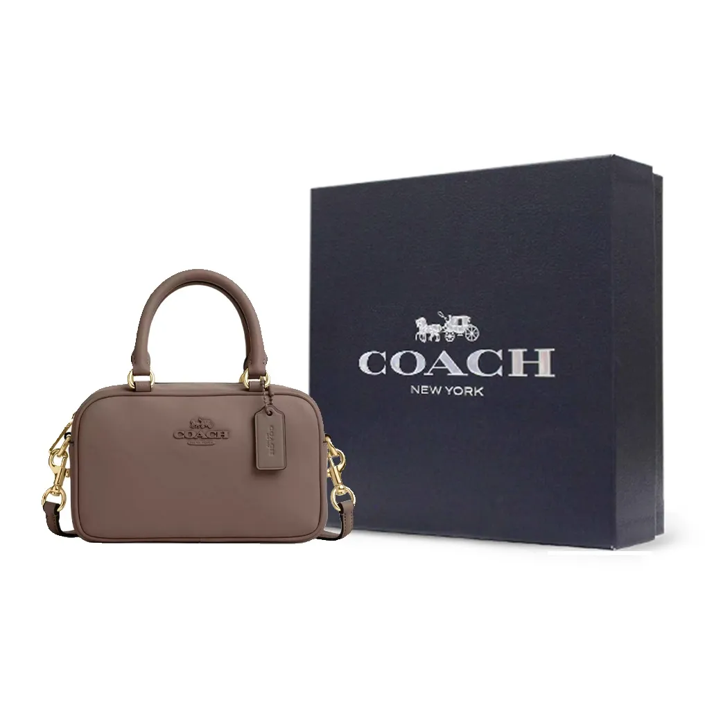 COACH SATCHEL Smooth Leather Bowling Bag, Shoulder Bag, Crossbody Bag, Handbag Small Unisex Dark Stone Color