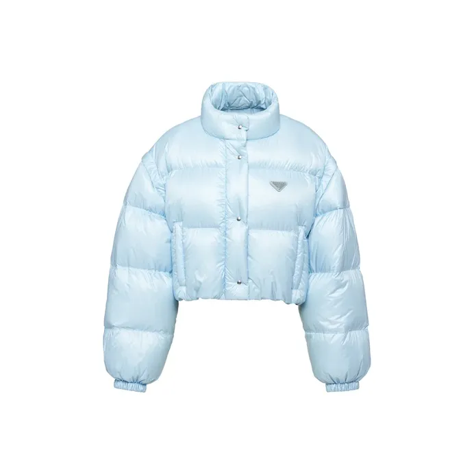 For the PRADA Re Nylon Convertible Down Jacket, inspect the fabric and overall construction. Authentic jackets will have a shiny, high-quality finish, and the down filling should be evenly distributed. The zippers should be robust and functional, and the logo should be prominently displayed without any flaws.