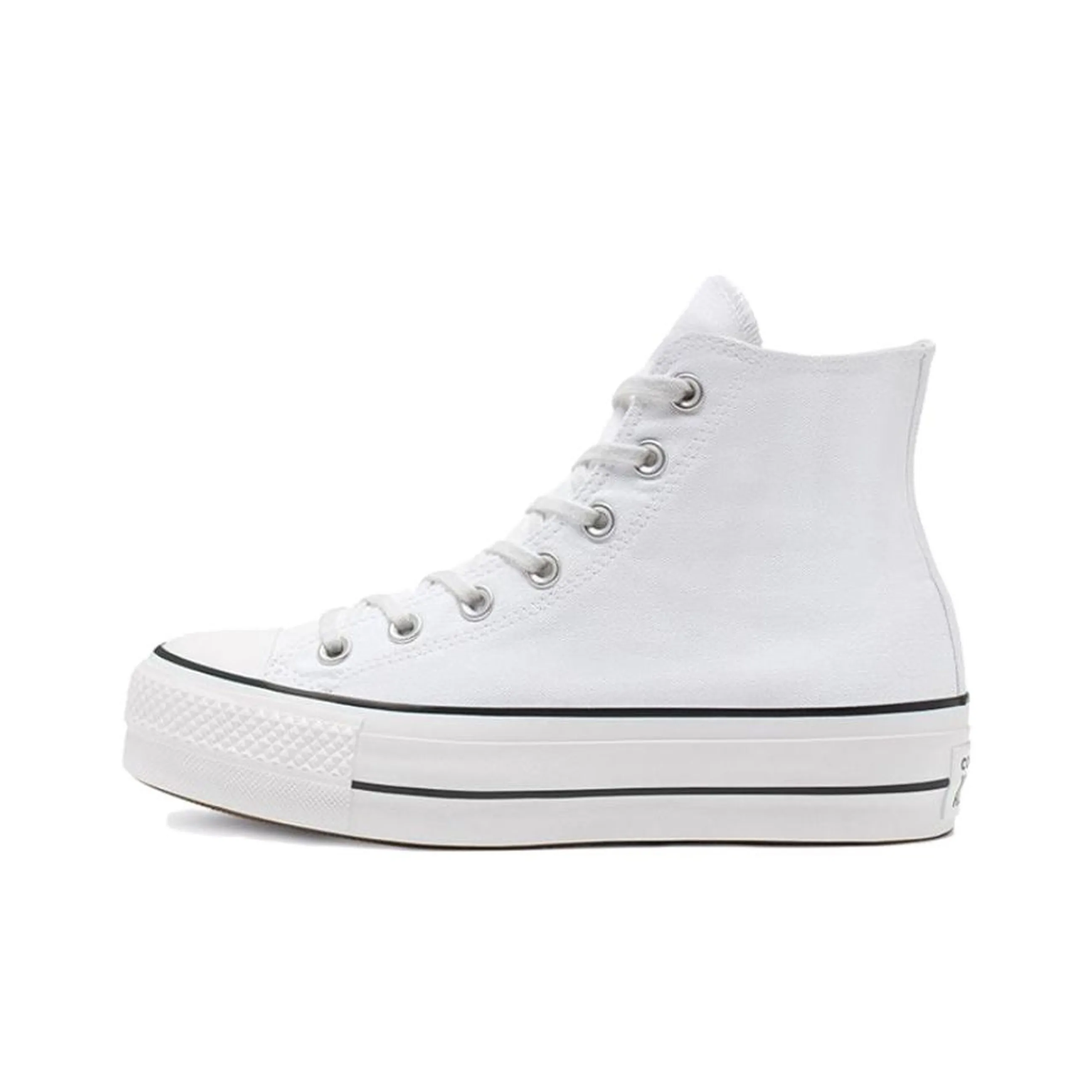 To verify the authenticity of the Chuck Taylor All Star Converse Platform High 'White', check the quality of the canvas and the overall construction. Authentic pairs will have a smooth, durable finish with no visible flaws. The rubber sole should be flexible yet sturdy, and the iconic logo should be clearly visible and well-defined.