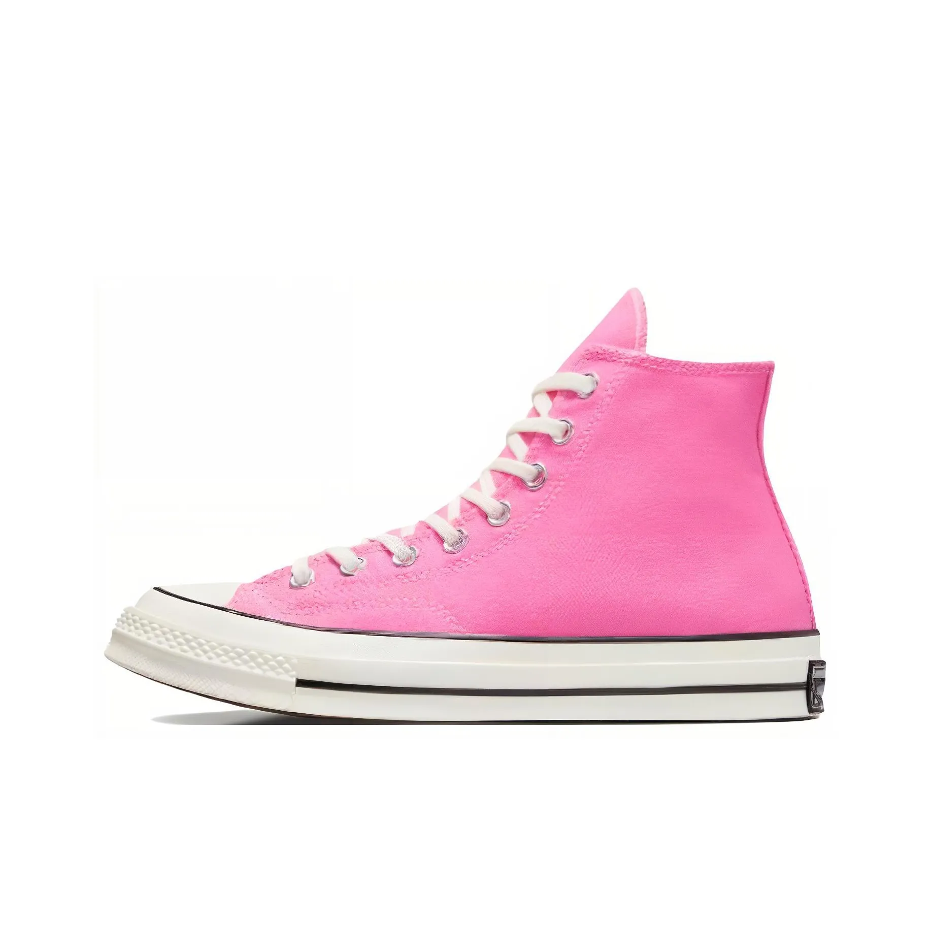 For the Chuck 70 Converse High 'Pink', inspect the color and texture of the canvas. Authentic pairs have a vibrant pink hue with a soft, durable feel. The toe cap should be smooth and rounded, and the rubber sole should have a distinct tread pattern. Ensure the stitching is even and the overall finish is flawless.