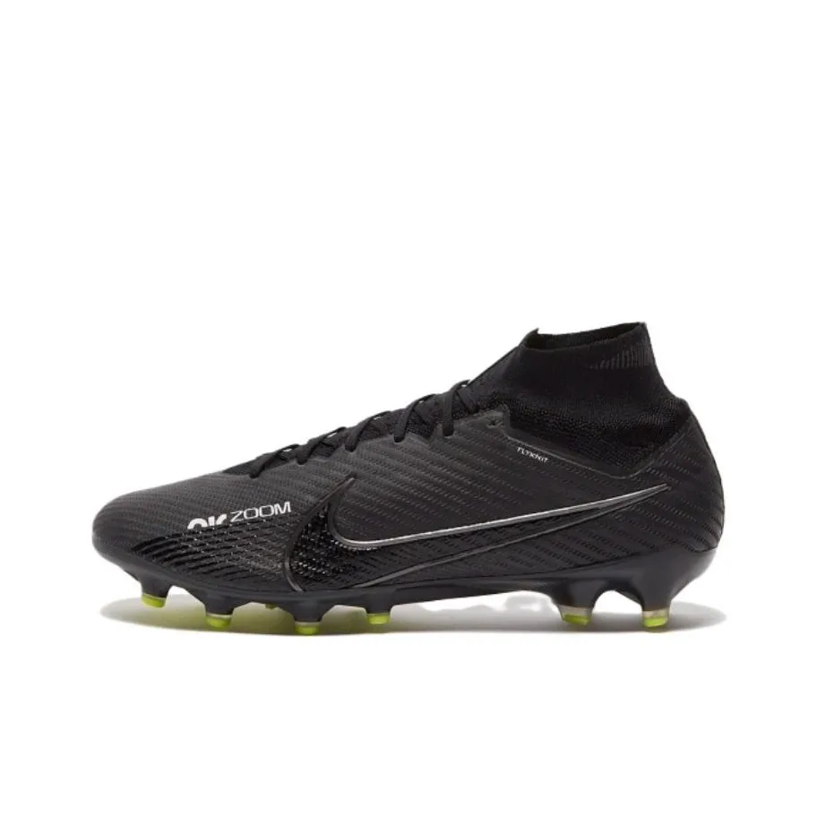 Authentic Nike Zoom Mercurial Superfly 9 Elite AG sneakers should exhibit high-quality craftsmanship. Look for a consistent black color with white and green accents, and ensure the materials are premium and well-finished.