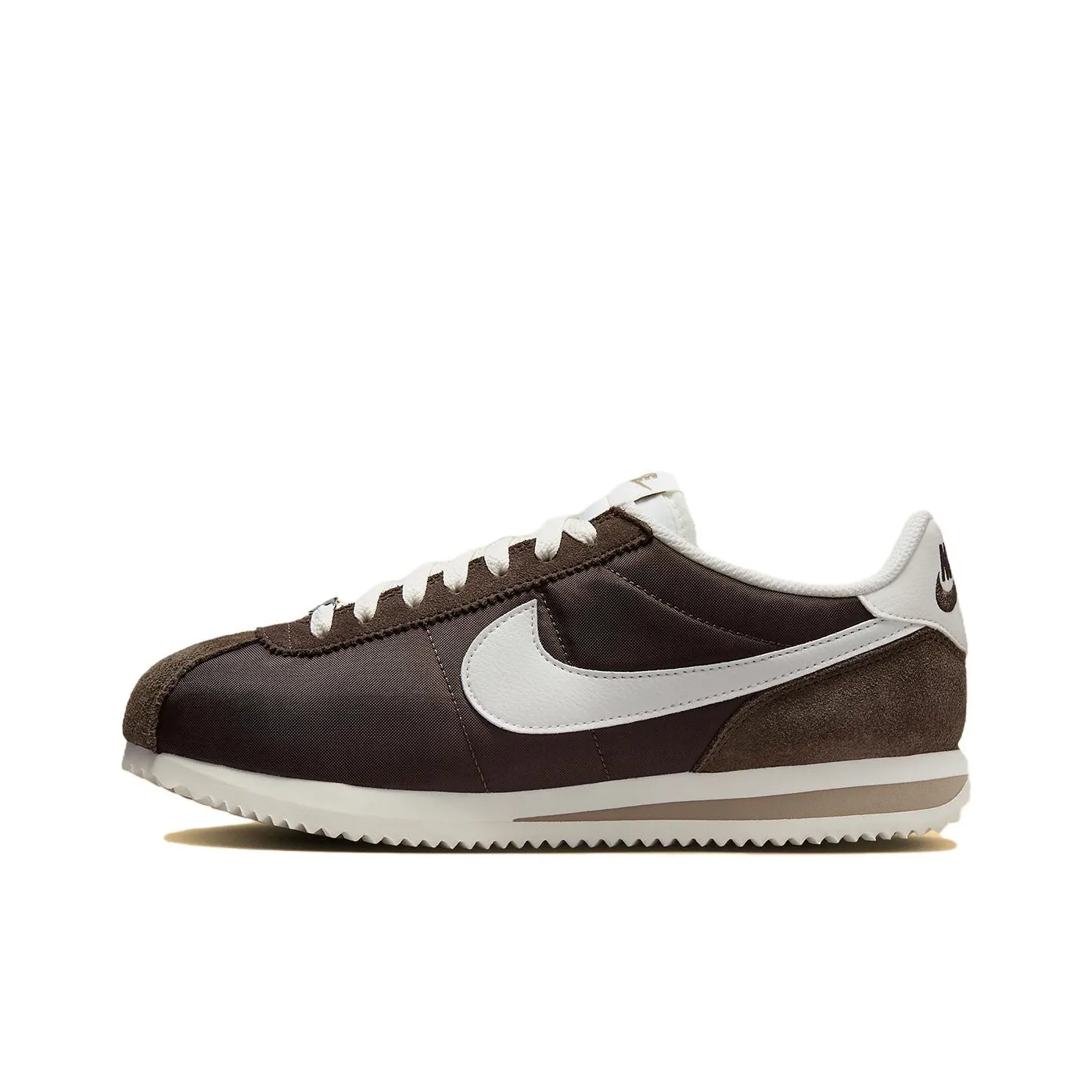 To authenticate the Nike Cortez Baroque Brown Women's, focus on the material and color. The upper should be made of high-quality leather and nylon, with a rich umber color that is consistent throughout. The stitching should be tight and uniform, and the overall shape should reflect the classic Cortez silhouette.