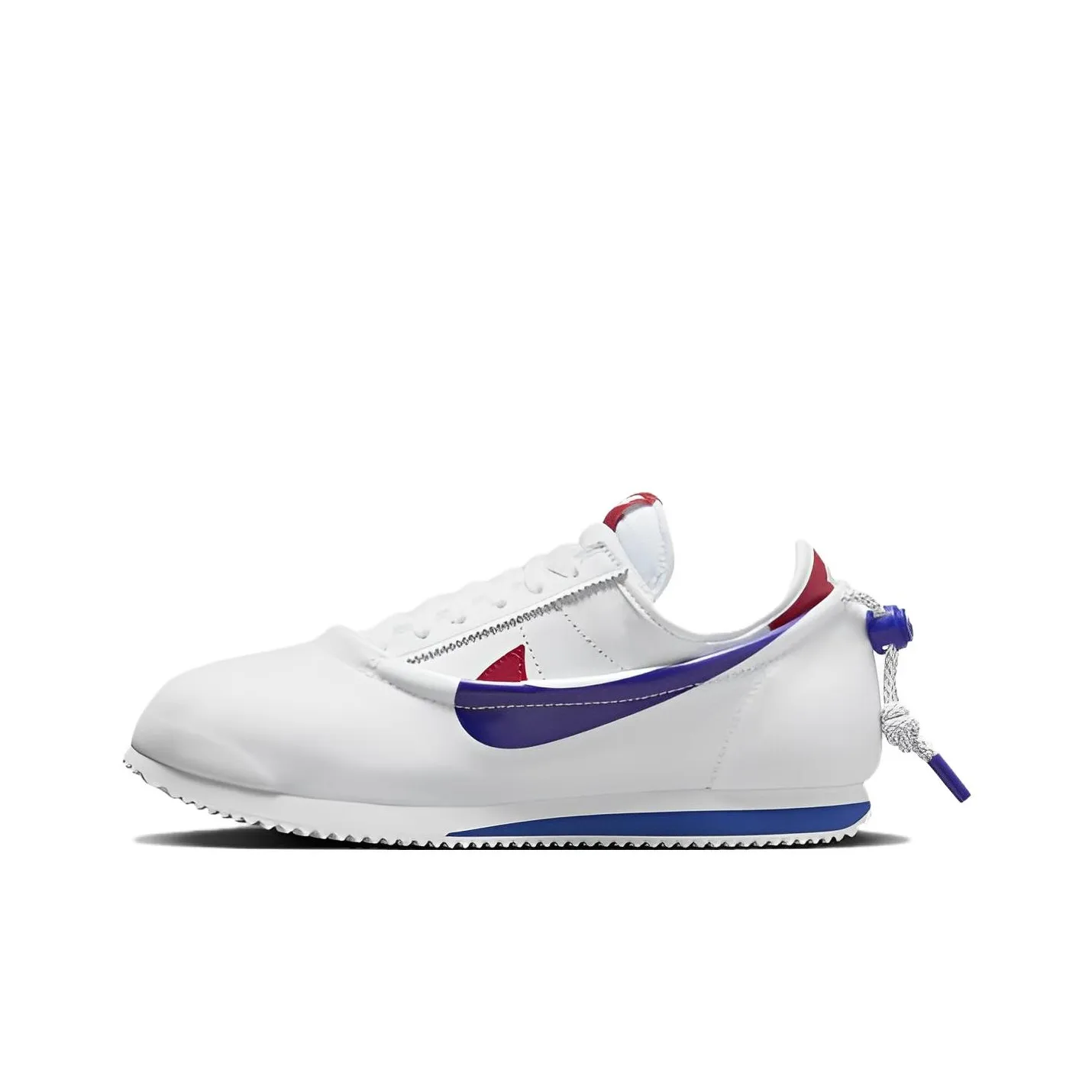 To identify the authenticity of the Nike Cortez Sp Clot Clotez Forrest Gump, examine the overall design and color scheme. Authentic pairs feature a clean white base with red and blue accents, mirroring the original design. The stitching should be even and consistent, with no loose threads or irregularities. Additionally, check the logo placement; the Nike swoosh should be correctly aligned and proportionate to the shoe's size.