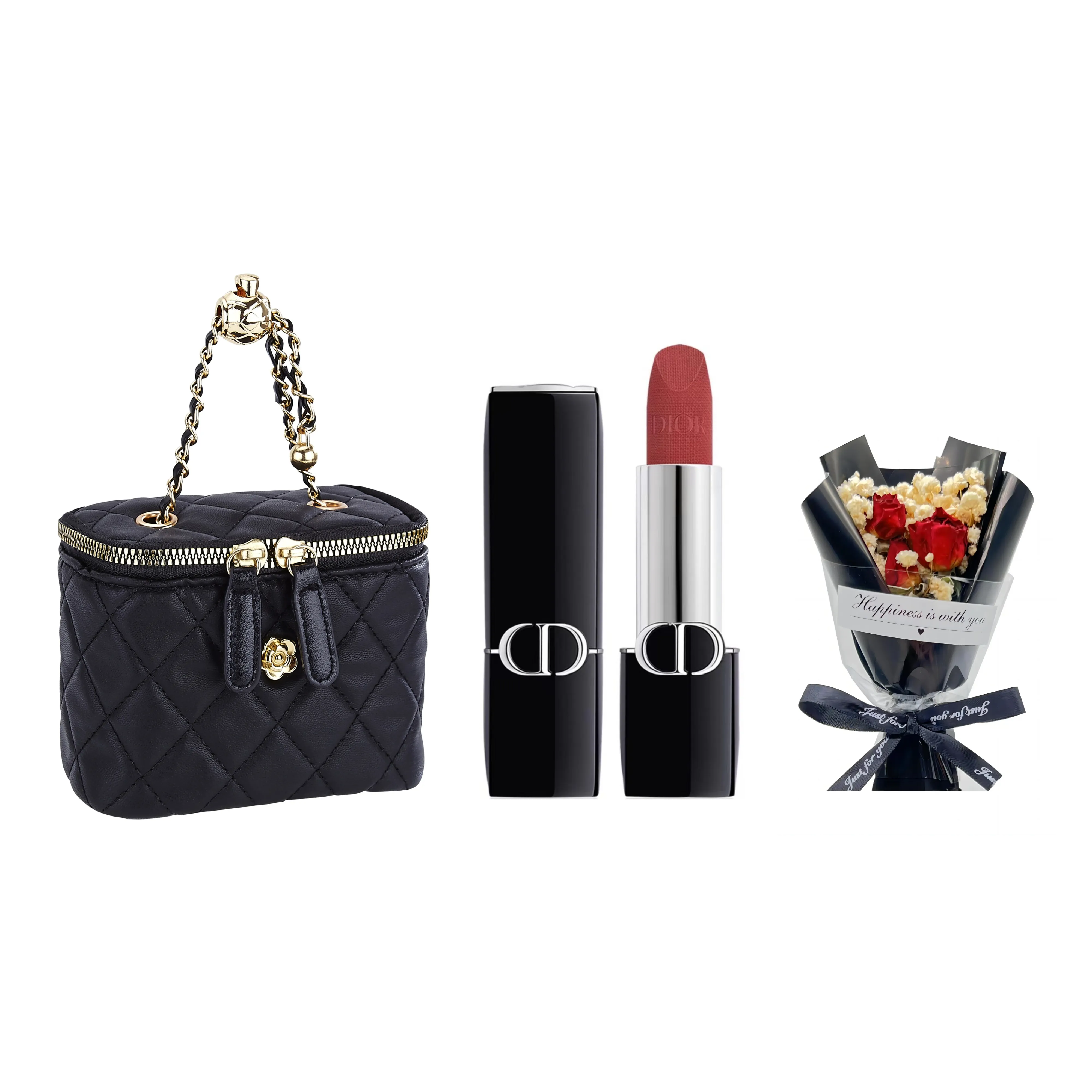 DIOR Vivid Blue Lipstick+Baby's Breath Bouquet+Mini Shoulder Bag Velvet