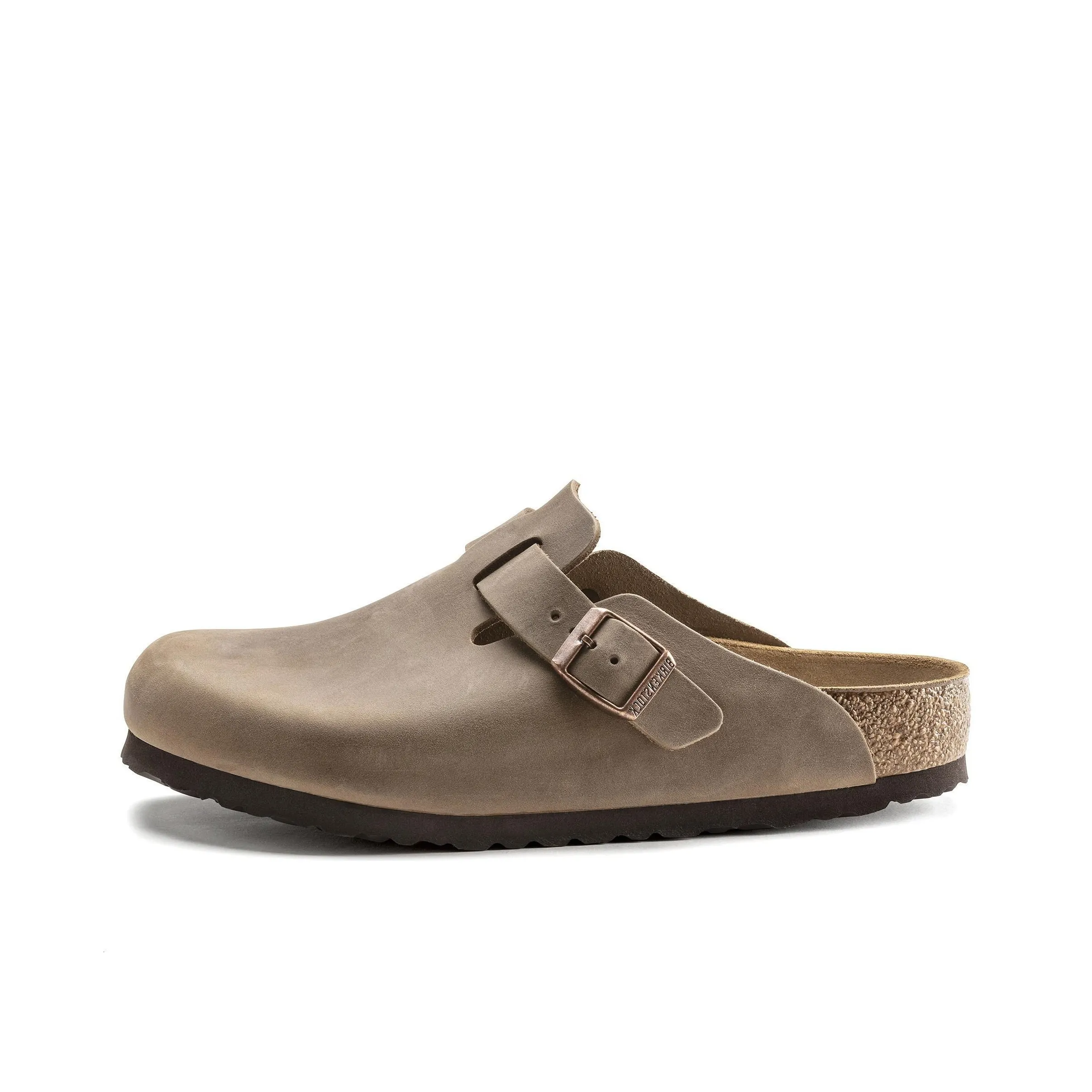 For the Boston Birkenstock Oiled Leather 'Tobacco', check the leather quality. Authentic Birkenstocks will have a rich, natural leather texture that feels supple. The sole should be lightweight yet robust, with a consistent finish.