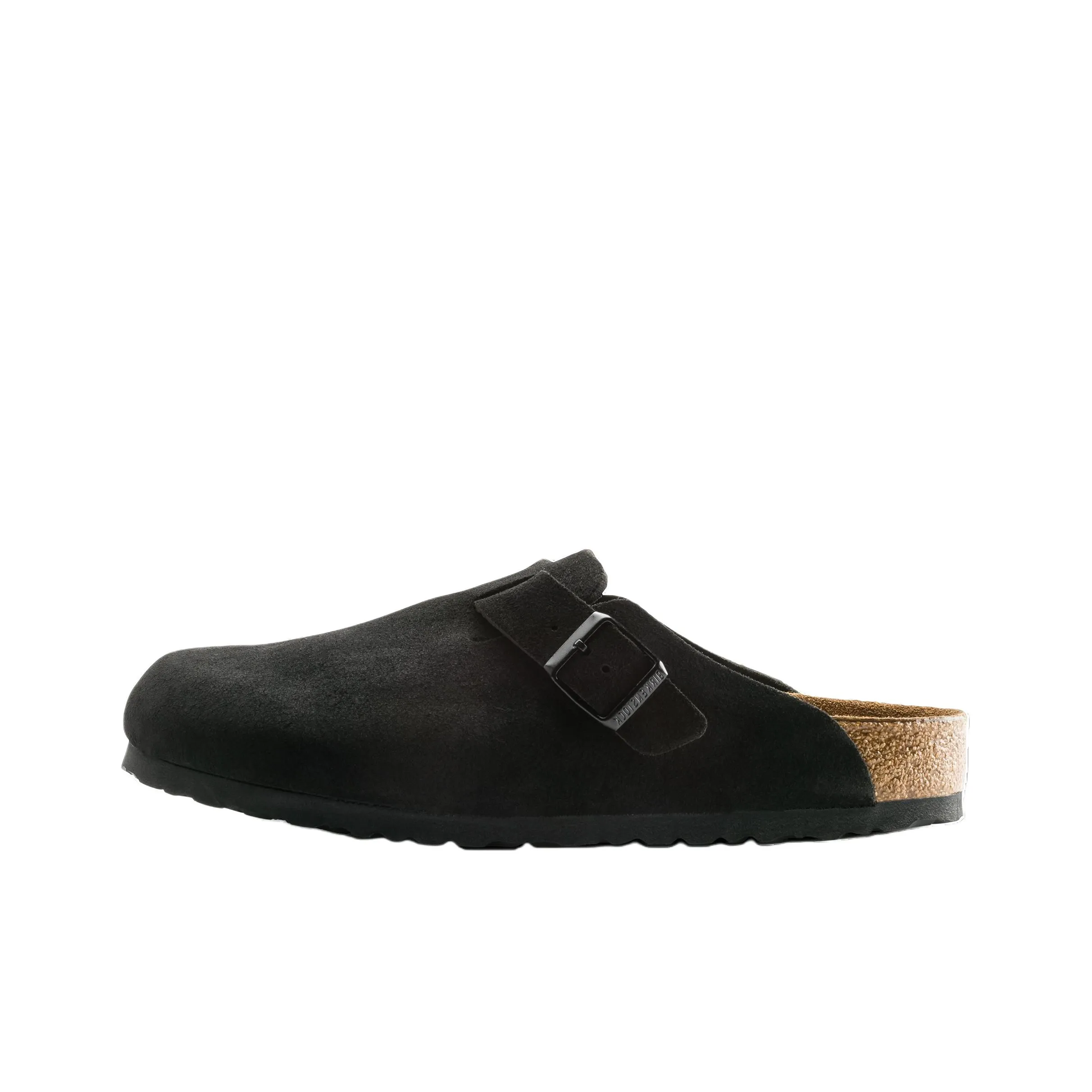 For the Boston Birkenstock Soft Footbed Suede 'Black', inspect the overall design and material quality. Authentic pairs will have a smooth finish, with no irregularities in the suede texture. The sole should be flexible yet sturdy, and the heel height should match the specifications.