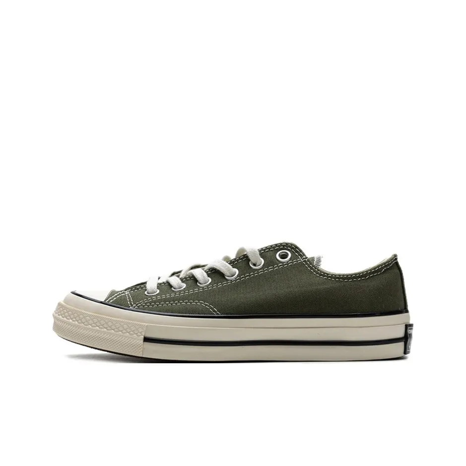 For the Chuck 70 Converse Vintage Canvas Low 'Vitality Green', inspect the canvas material for quality. Authentic pairs have a soft yet durable feel. The color should be consistent, and the rubber sole should have a specific texture that is not overly glossy. Look for the iconic star logo on the side, which should be well-defined.