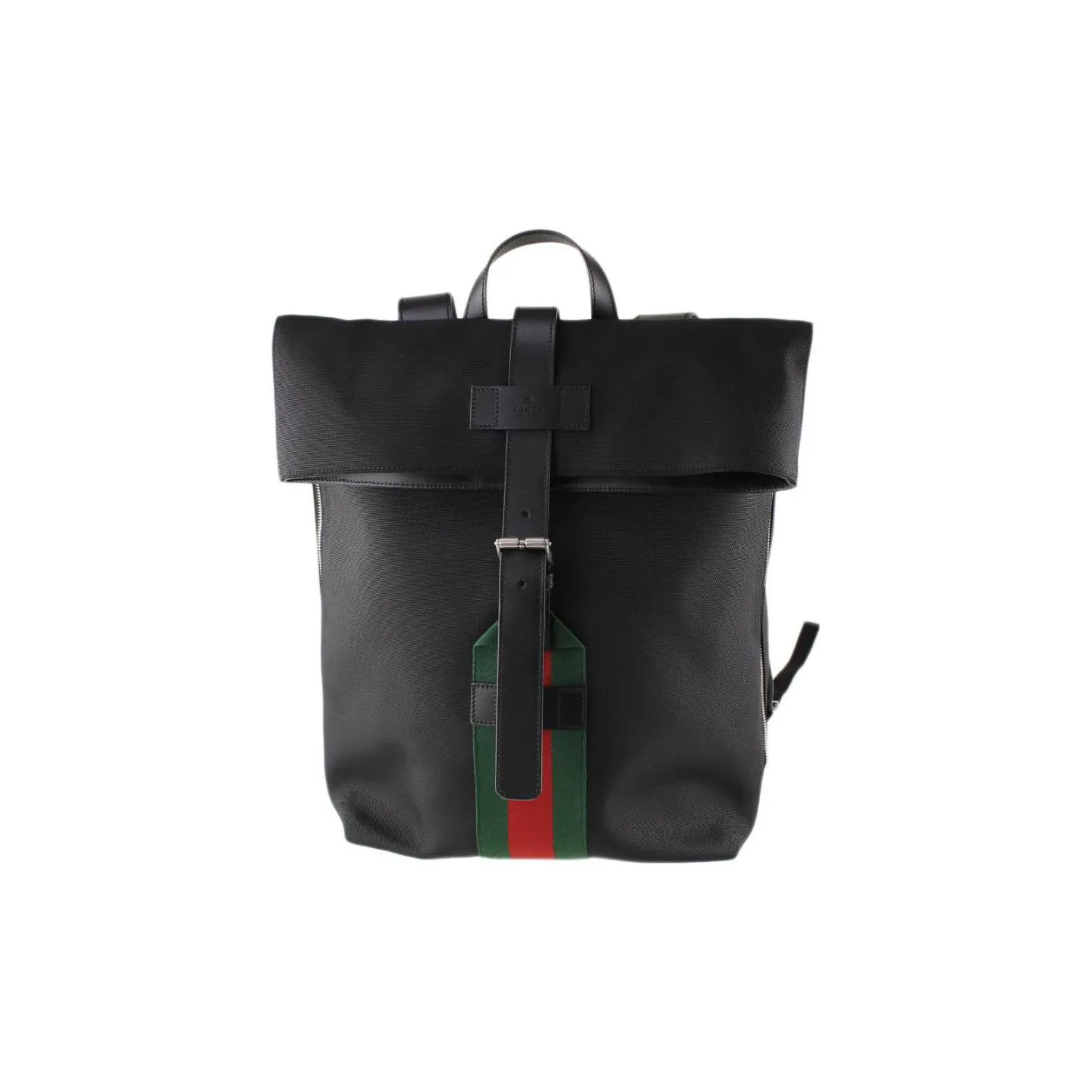 For the GUCCI Canvas With Leather Backpack Backpack Men's Black, examine the flap closure and overall structure. Authentic GUCCI backpacks will have a robust build with high-quality materials. The dimensions should align with the specifications, and the interior should feature a well-designed laptop compartment.