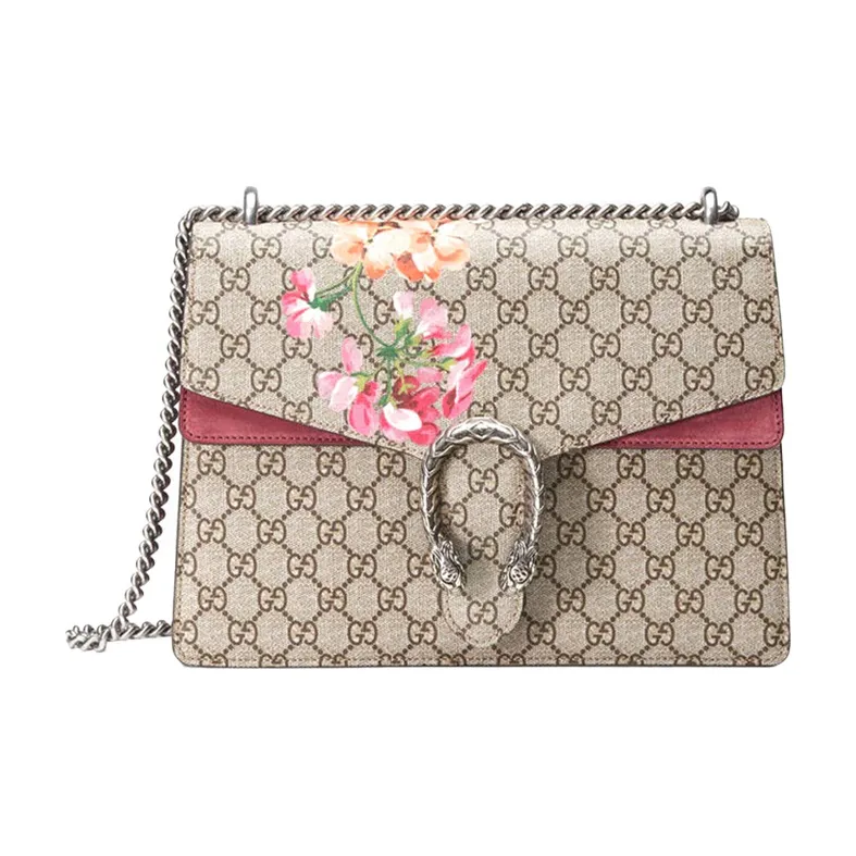 GUCCI Dionysus GG Blooms Canvas With Leather Shoulder Bag Crossbody Bag Medium Size Women's Ebony/Pink