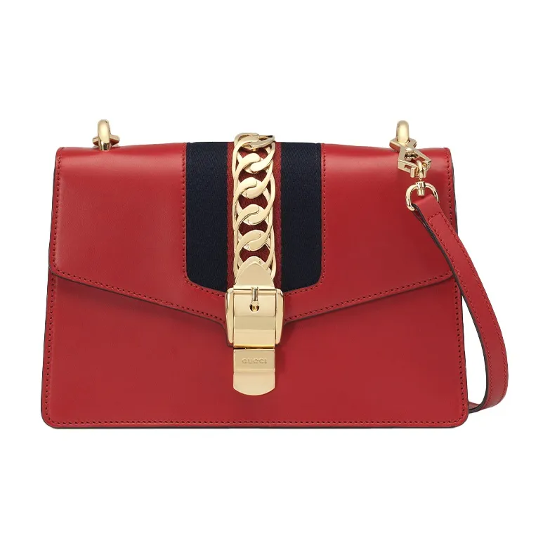 For the GUCCI Sylvie Cow Leather Portable Crossbody Bag, check the overall craftsmanship. Authentic bags will have even stitching and high-quality leather that feels luxurious. The hardware should be sturdy and well-finished, with no signs of tarnishing.
