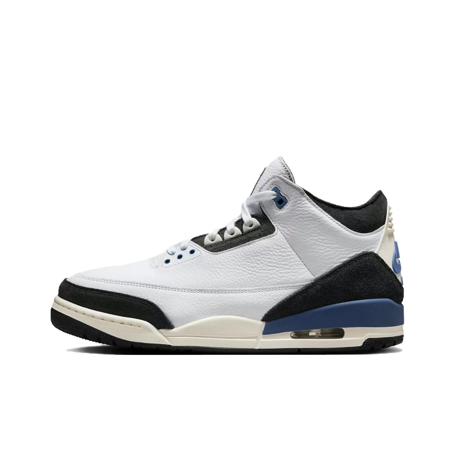 When assessing the A Ma Maniére X Air Jordan 3 OG SP 'Diffused Blue', focus on the quality of the leather and the overall construction. Authentic pairs will have a smooth, high-quality leather upper with no imperfections. The color should be a deep blue, and the rubber sole should feel sturdy. The stitching should be even and tight, with no loose threads.