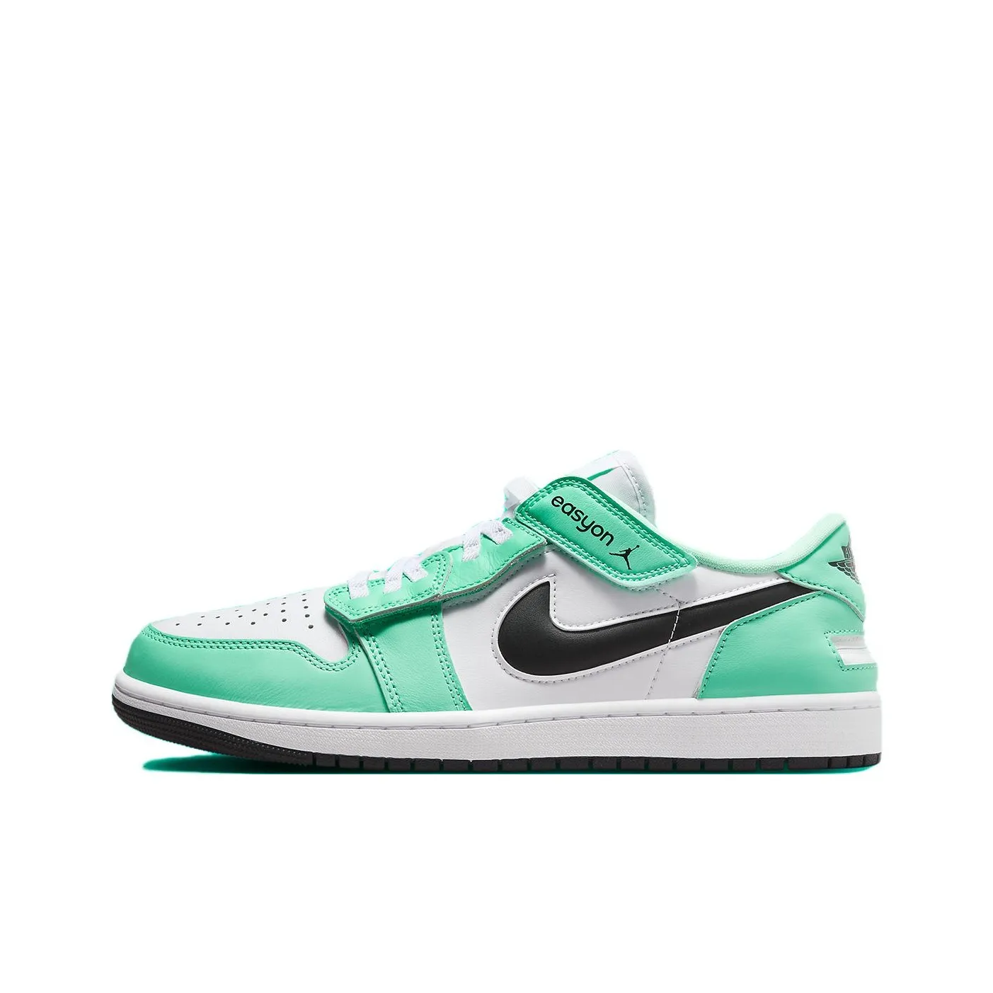 To authenticate the Jordan 1 Low Flyease Green Glow, examine the upper material and sole. Authentic pairs will have a robust leather upper and a durable rubber sole. The colorway should be vibrant, with the green and white contrasting sharply. Look for consistent stitching and a well-formed silhouette.
