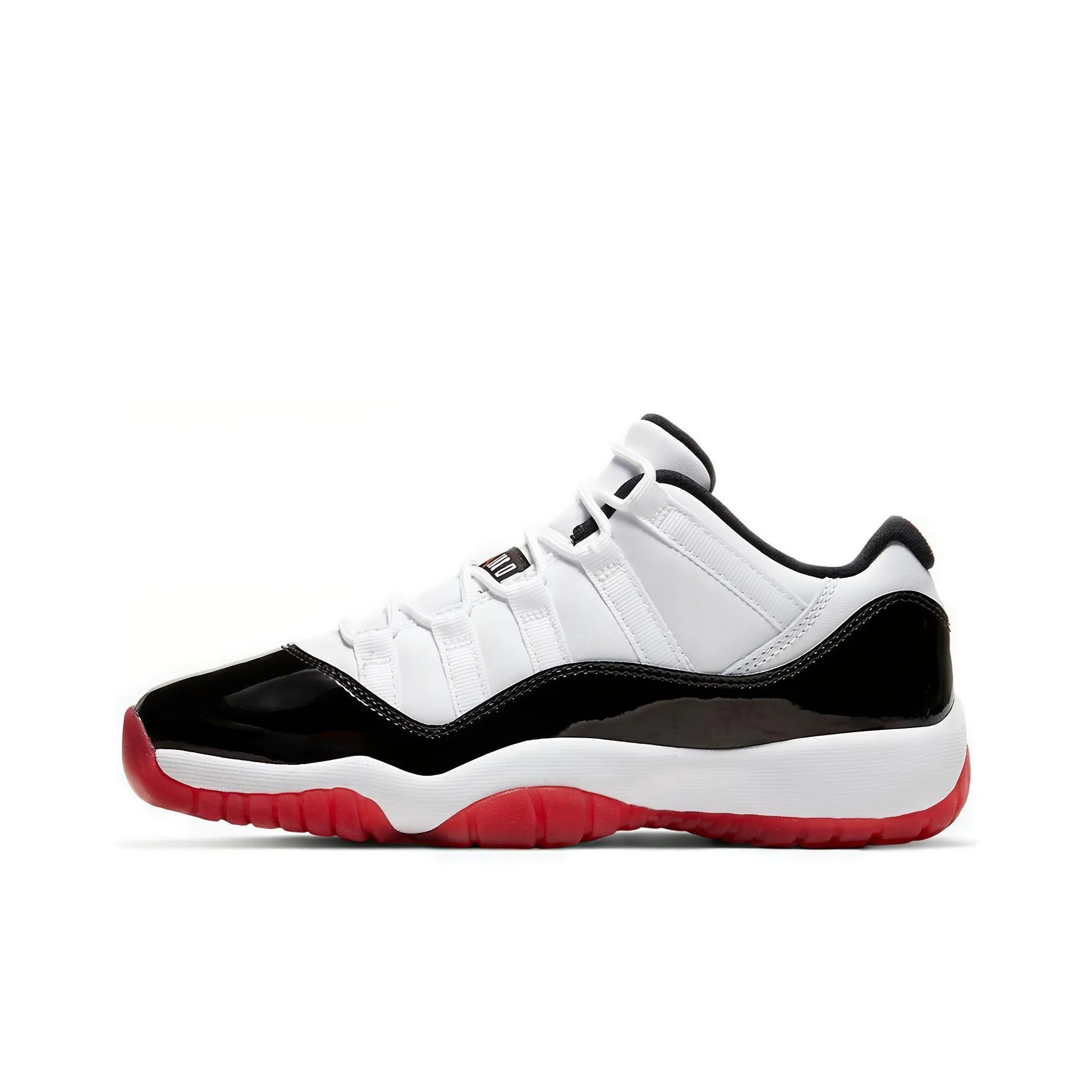 For the Air Jordan 11 Retro Low 'Bred', inspect the mesh upper for durability and breathability. The rubber sole should have a distinct tread pattern, and the colorway must be consistent with official images. Ensure the overall shape is true to the original design.