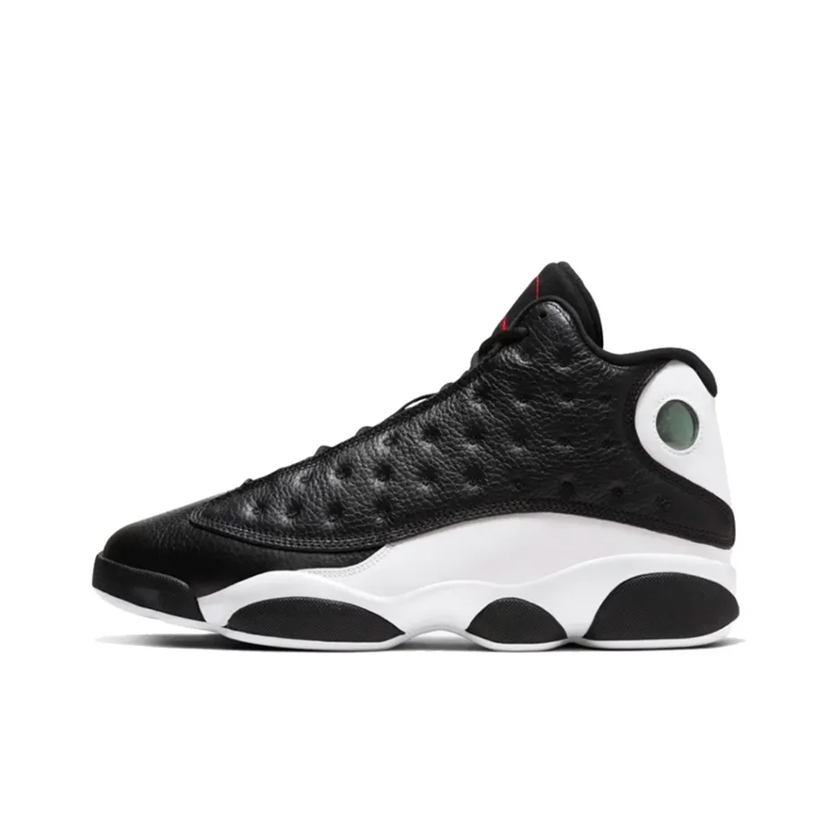 For the Air Jordan 13 Retro 'Reverse He Got Game', inspect the overall design and color accuracy. Authentic pairs will have a high-top silhouette with a well-defined round toe. The black and white color scheme should be sharp, with no fading or discoloration.