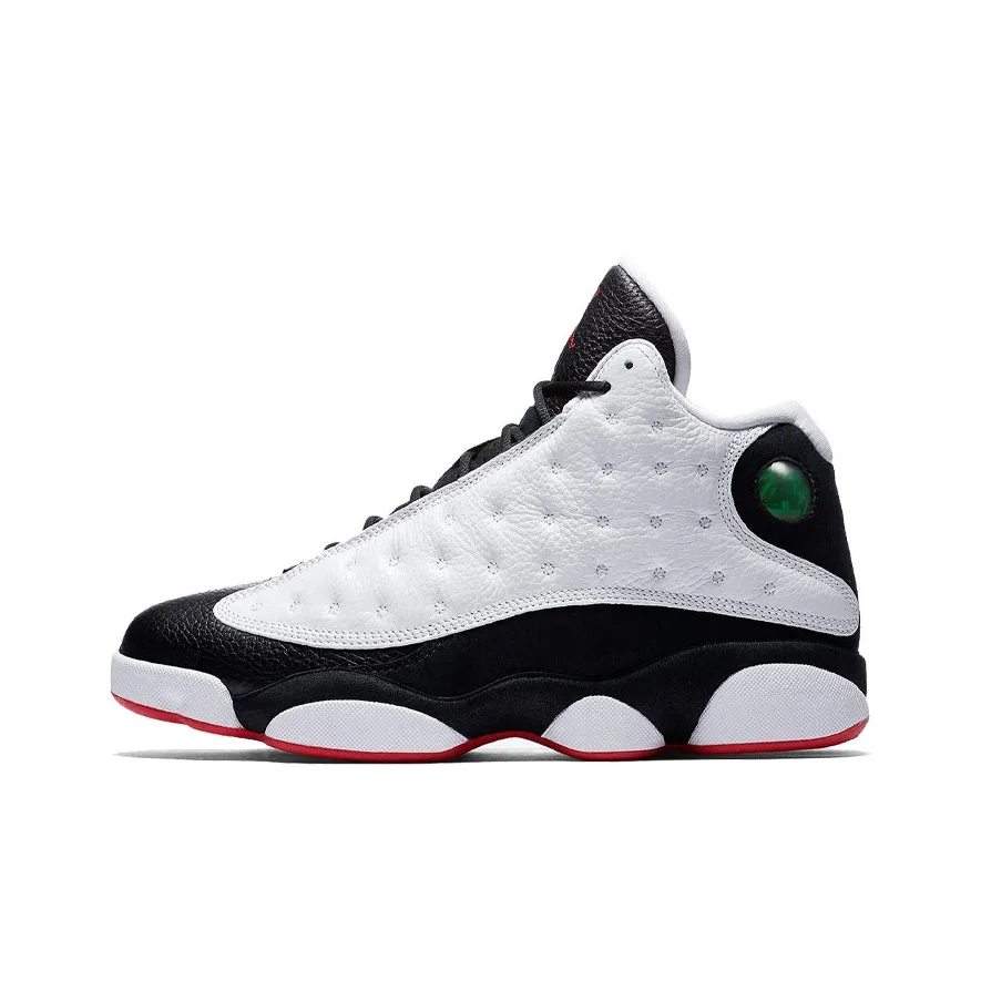 The Jordan 13 Retro 'He Got Game' 2018 GS should have a striking white, black, and red color scheme. Inspect the overall shape and ensure the materials are high-quality, with no visible defects.