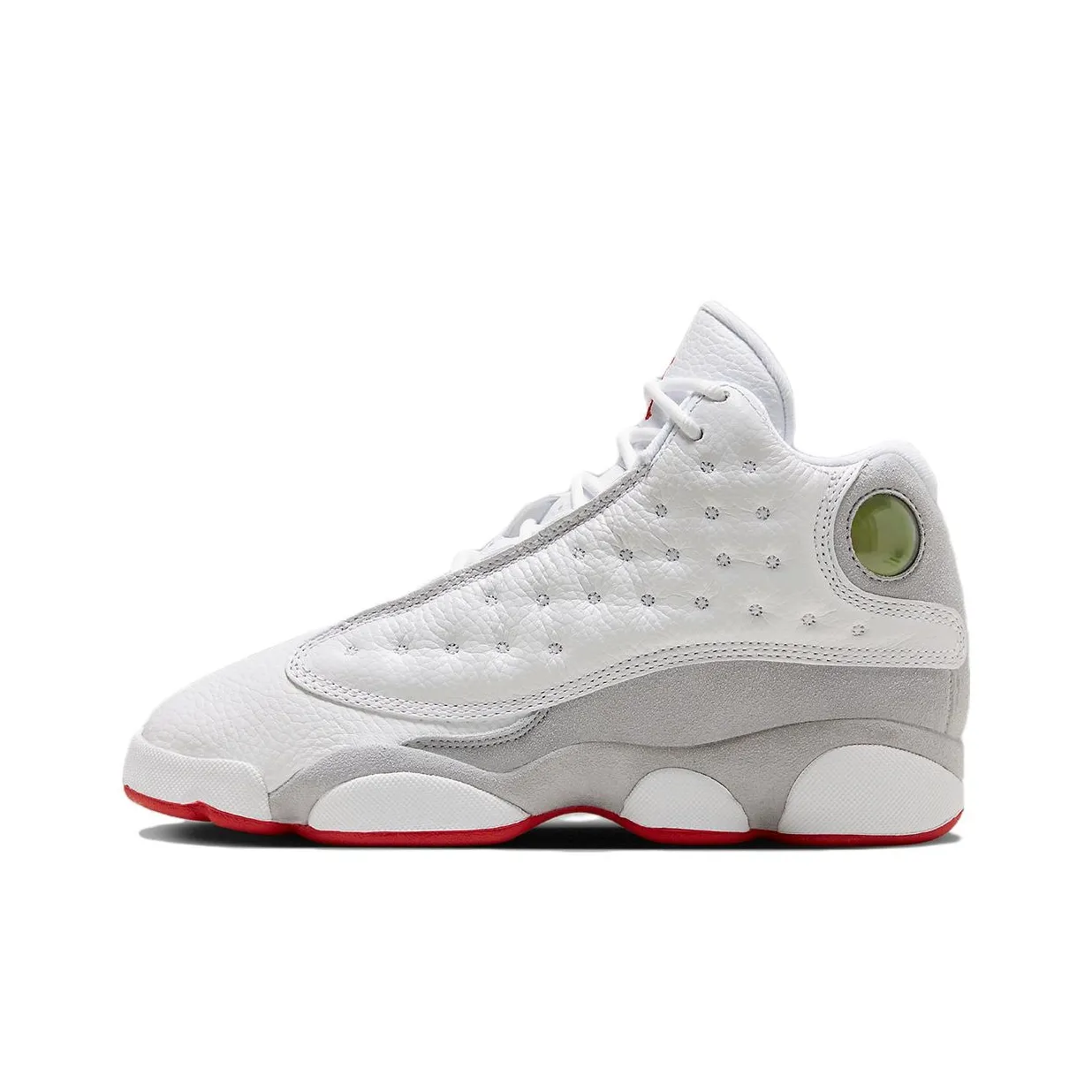 For the Jordan 13 Retro Wolf Grey GS, ensure the colorway features a clean white, gray, and red combination. The materials should feel premium, and the stitching should be even and tight.