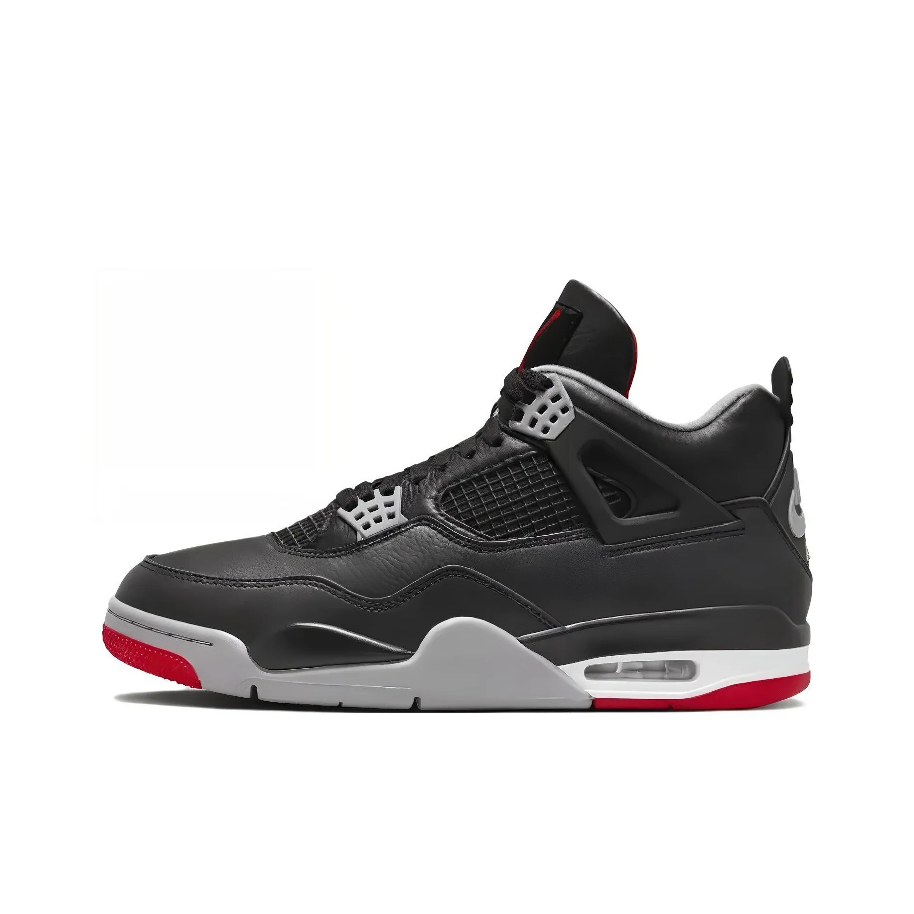 For the Jordan 4 Retro Bred Reimagined Men's, inspect the overall appearance for quality. The leather should be soft yet durable, and the color should be consistent with the official images. Authentic pairs will have a well-defined toe box and a flat heel, with no signs of irregularities in the design.