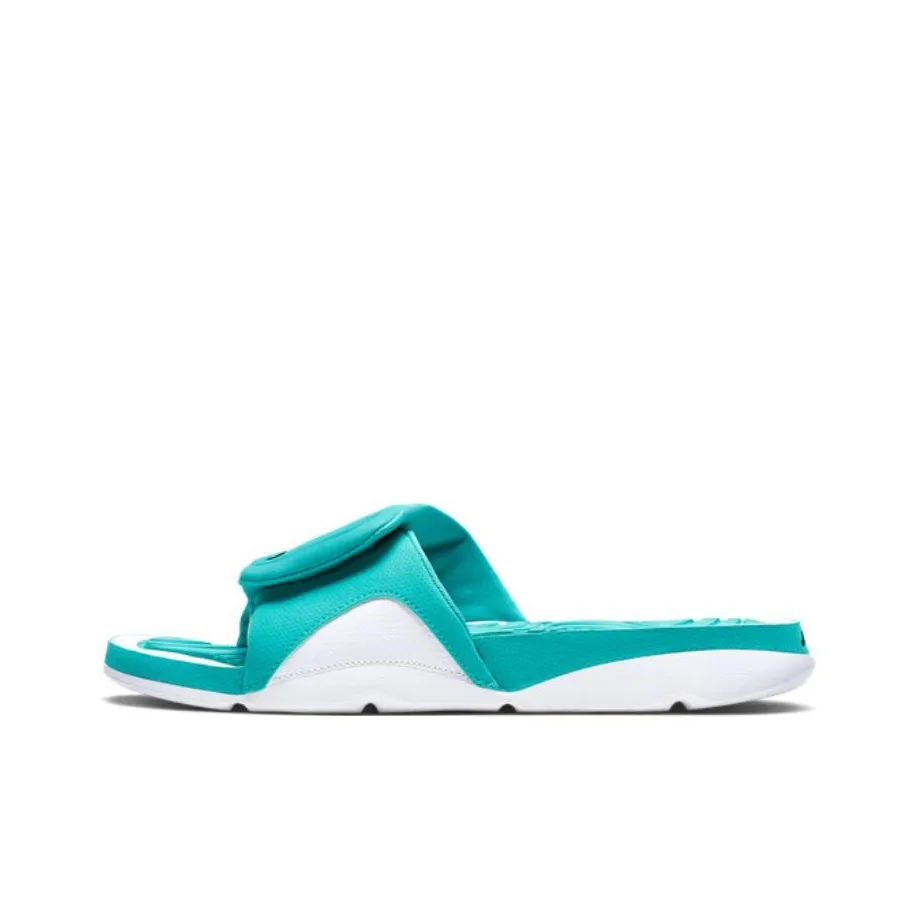 For the Jordan Hydro 4 Green, inspect the overall design for quality. The colorway should be vibrant, with no discoloration. The foam sole should be uniform and free from defects, while the upper material should exhibit a smooth texture, indicating high-quality craftsmanship.