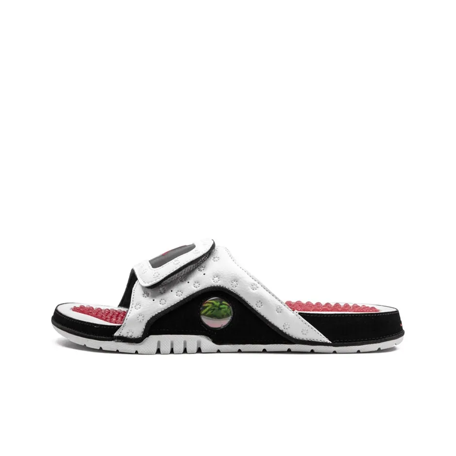 When assessing the Jordan Hydro 13 He Got Game, focus on the color accuracy and material quality. The black upper should be consistent, and the foam sole must feel durable. Authentic models will have a well-constructed design, with no visible glue marks or uneven surfaces.