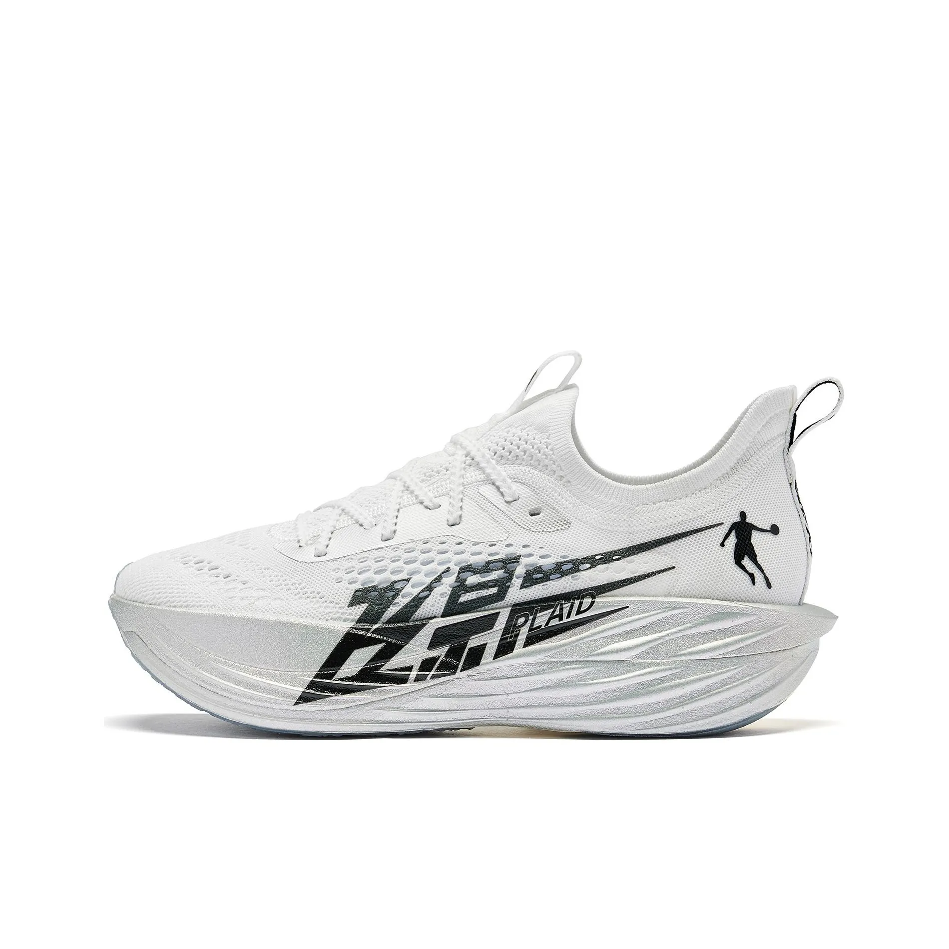 To authenticate the QIAODAN Flying Shadow Plaid Running Shoes, focus on the shoe's appearance. Authentic versions will have a well-defined Jordan White/Silver color scheme, with no fading or discoloration. The stitching should be tight and uniform, as counterfeit shoes often have loose threads or uneven seams.