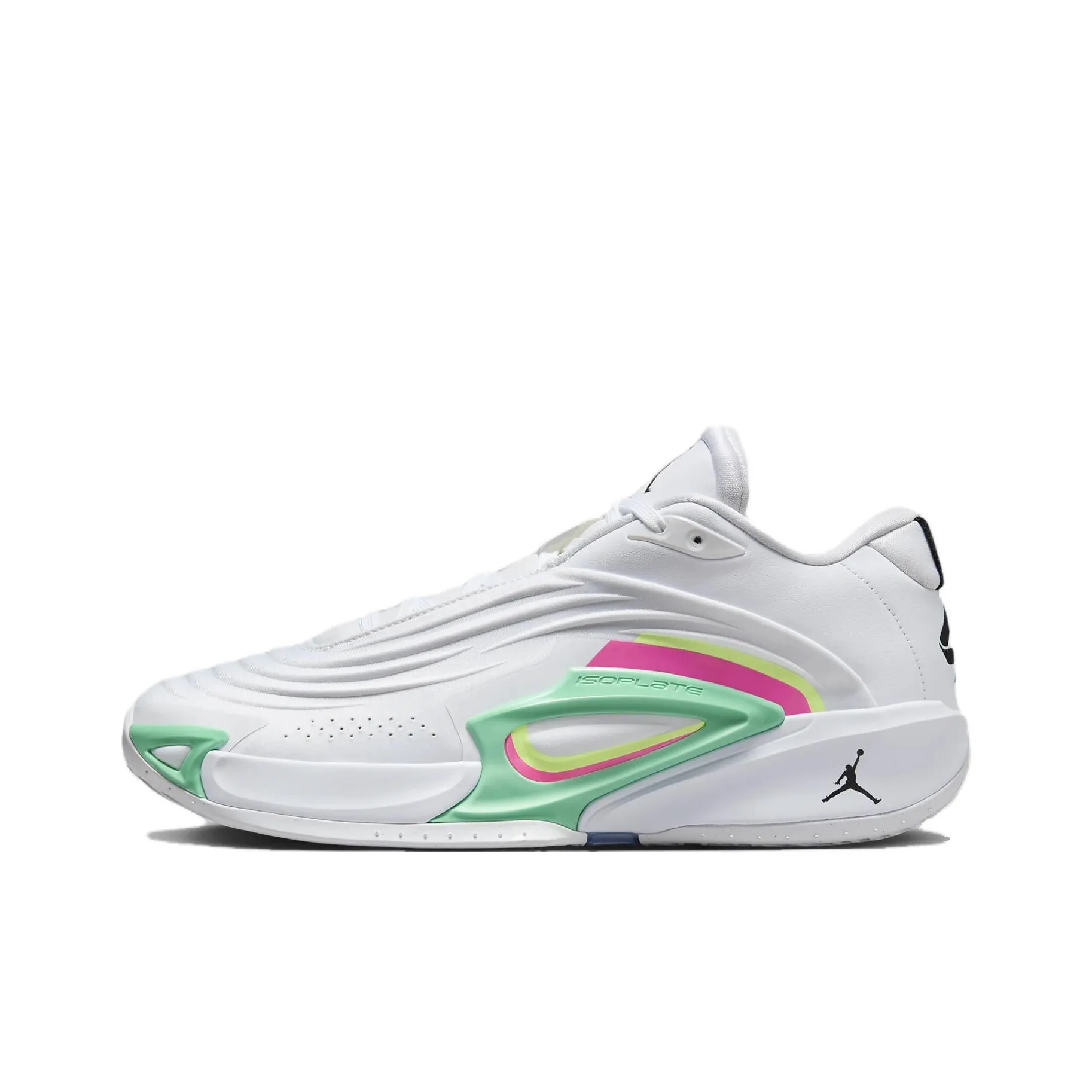 To identify the authenticity of the Air Jordan Luka 3 Pf 'White Green Glow', examine the stitching and overall craftsmanship. Authentic pairs feature precise stitching with no loose threads or uneven seams. The colorway should be vibrant and consistent, with the 'White/Volt Light/Green Light/Black' hues appearing as intended. Additionally, check the sole for proper branding and texture, as genuine products have a distinct feel and finish.