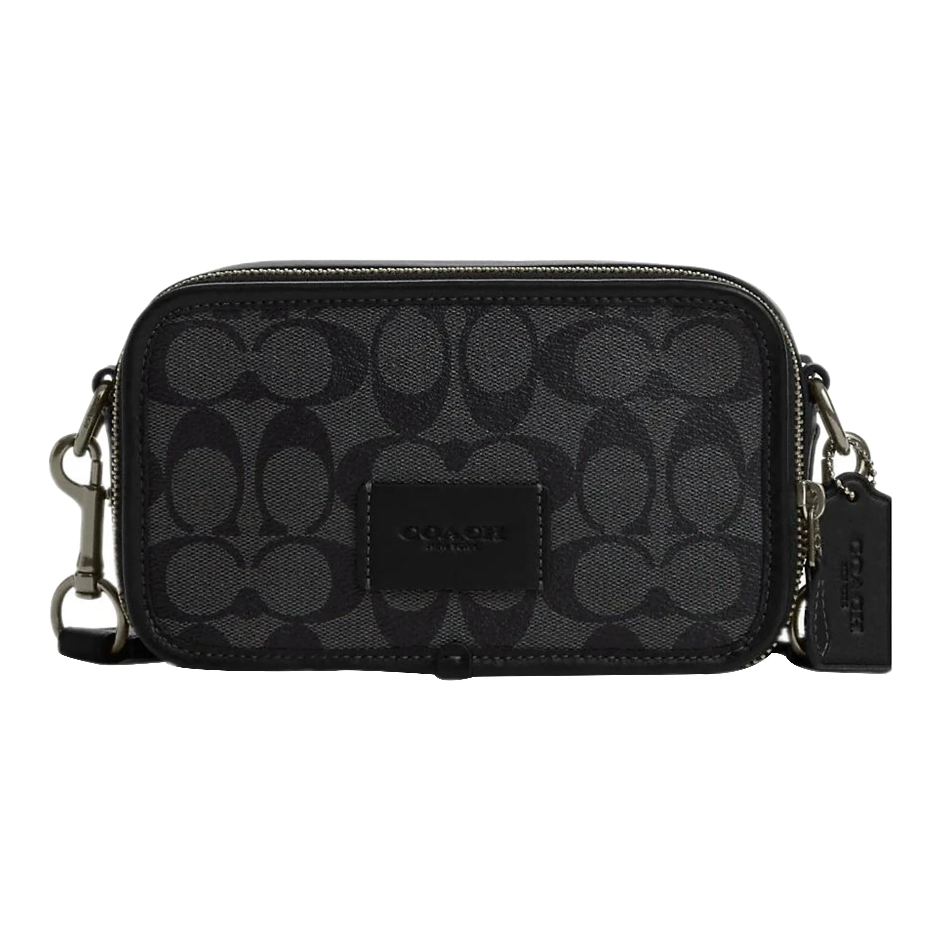 For the COACH Graham Crossbody Bag, check the canvas texture and overall finish. Authentic bags have a soft yet durable feel, with no loose threads or imperfections. The color should be charcoal black, consistent throughout, and the zipper should operate smoothly without any resistance.