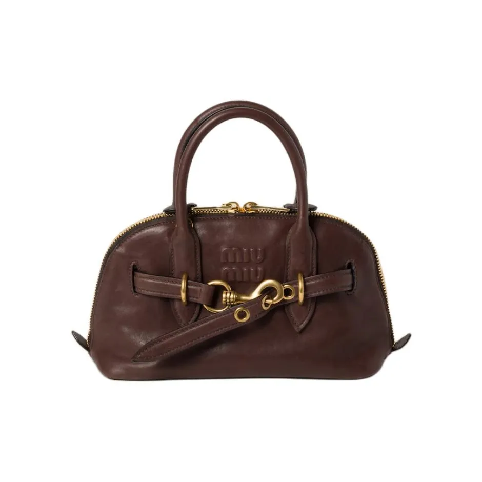 MIU MIU Nappa Leather Handbag Women's Oak Brown