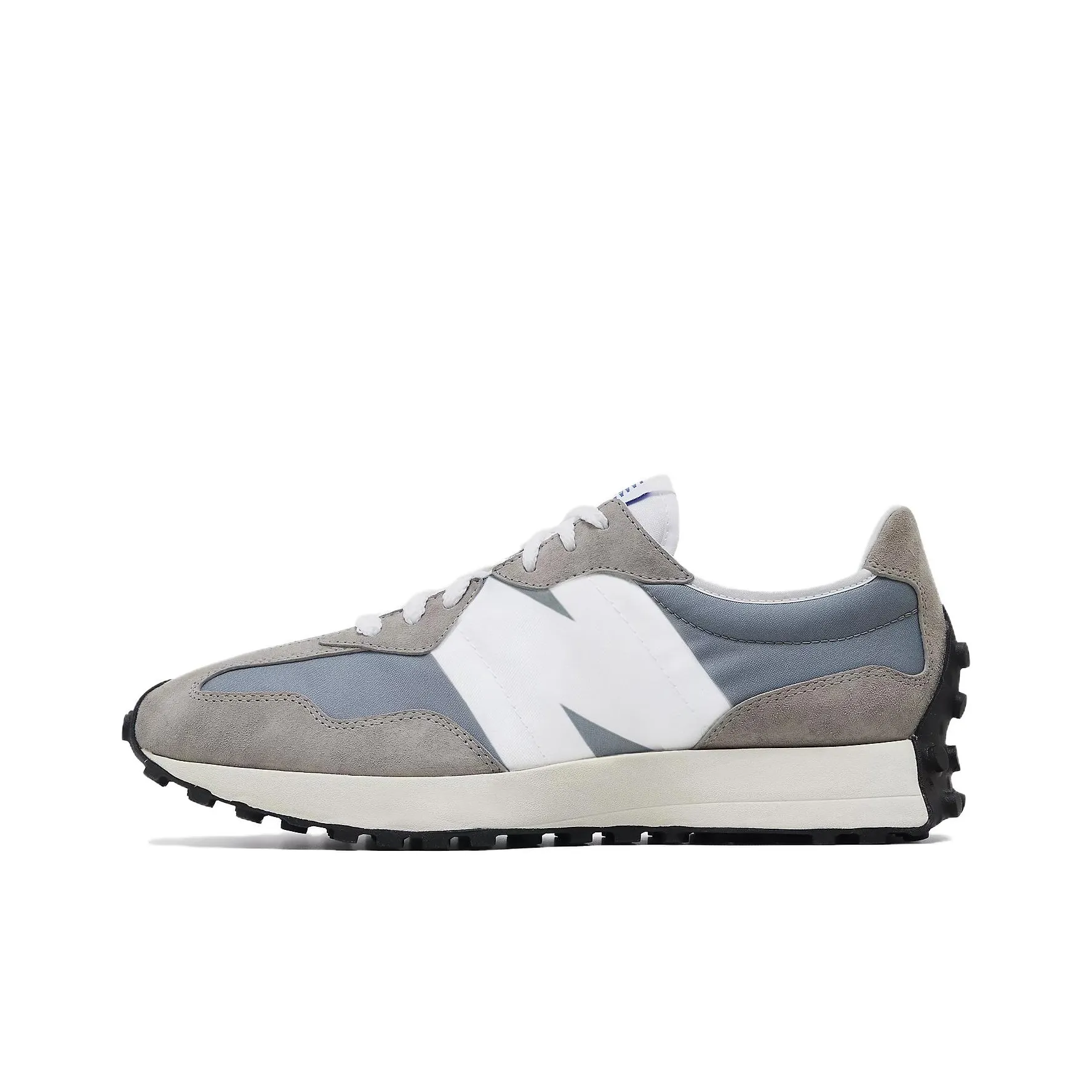 To identify the authenticity of the 327 New Balance 'Sea Salt', examine the stitching and overall construction. Authentic pairs have precise stitching with no loose threads. The colorway should be consistent with official images, featuring a blend of gray, black, and white. The logo should be clear and well-defined, with no smudging or fading. Additionally, check the sole for a rubber material that feels durable and has a specific tread pattern unique to New Balance.