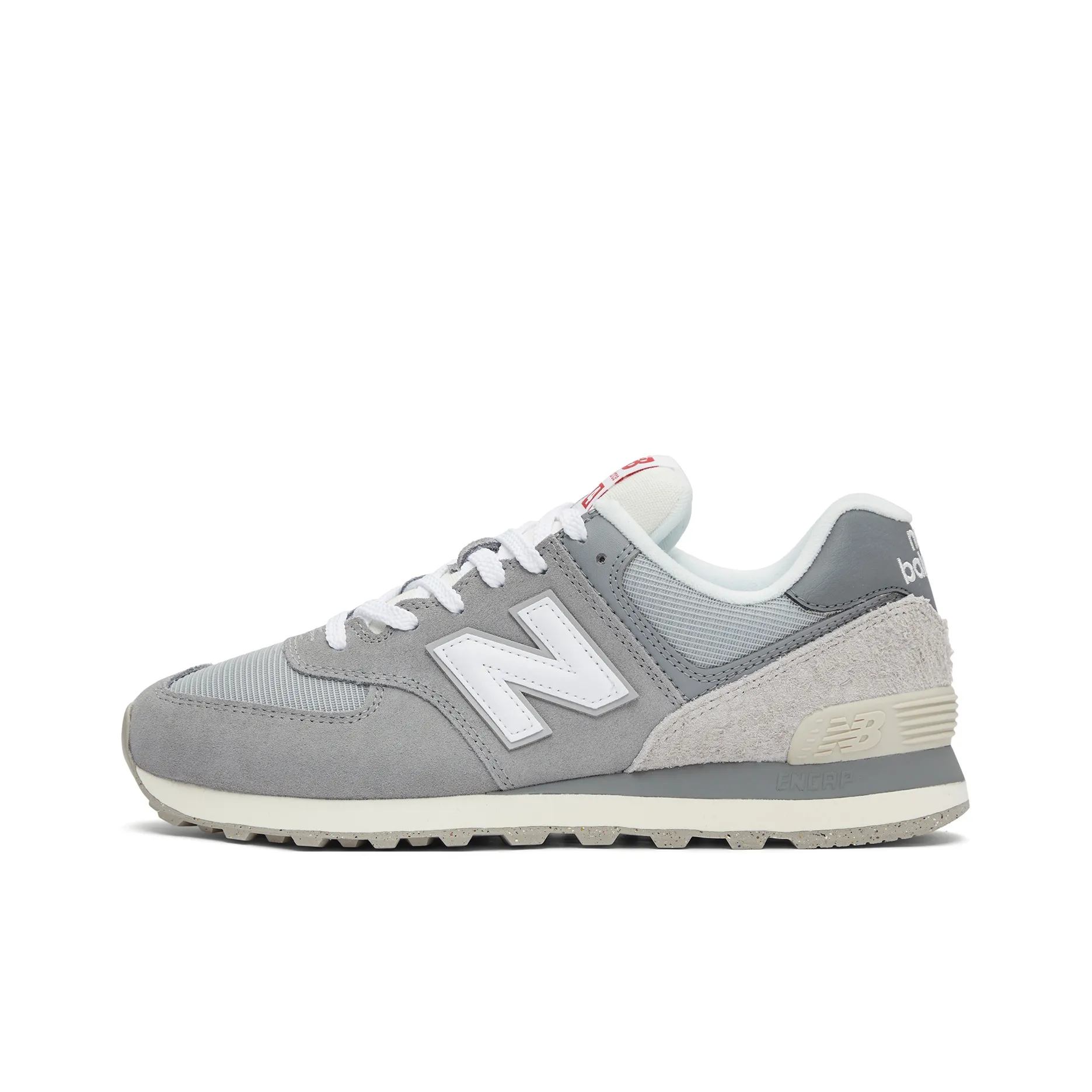 Examine slate grey suede and mesh for consistent nap and dye saturation, smooth transition between grey and white accents, and uniform perforations. Ensure stiff, supportive heel counter, correctly aligned N logo with straight stitching, and clean midsole lines with even speckling if present. Compare outsole tread and profile to verified images; irregular soles or mismatched colors often indicate non-authentic manufacturing.