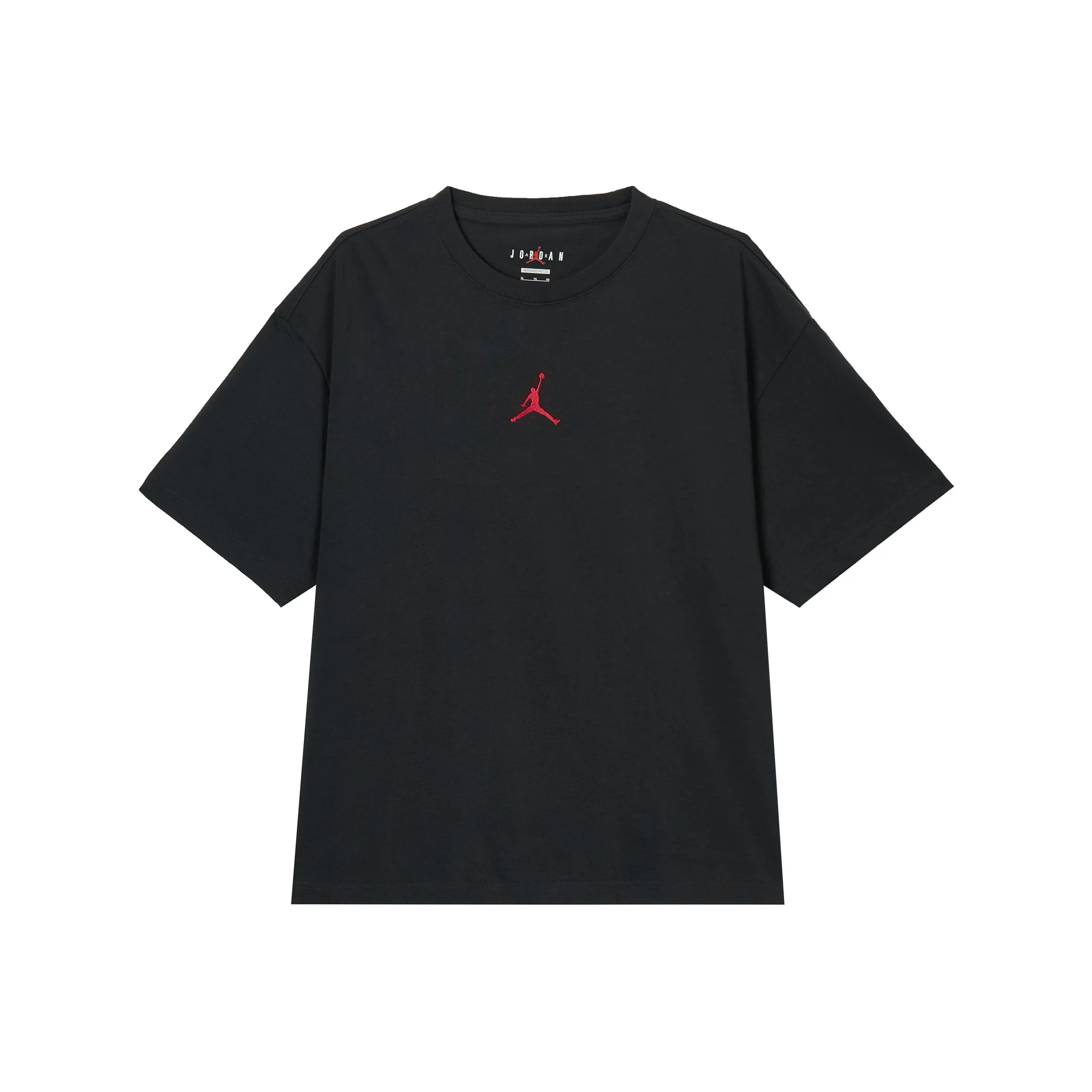 Examine the label on the Jordan OVERSIZED T Shirt for clear, crisp text and accurate brand details. Authentic labels should include care instructions and a style ID that matches the product. The stitching around the label should be neat, with no loose threads, indicating a well-made item.
