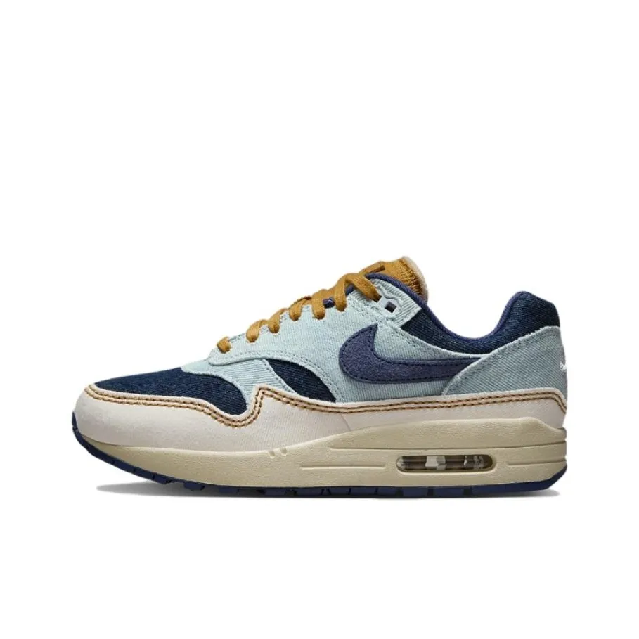 For the Nike Air Max 1 '87 'Aura' Women's, check the denim material for authenticity. Genuine pairs have a consistent texture and color. The stitching should be even, and the overall design should match official images from Nike.