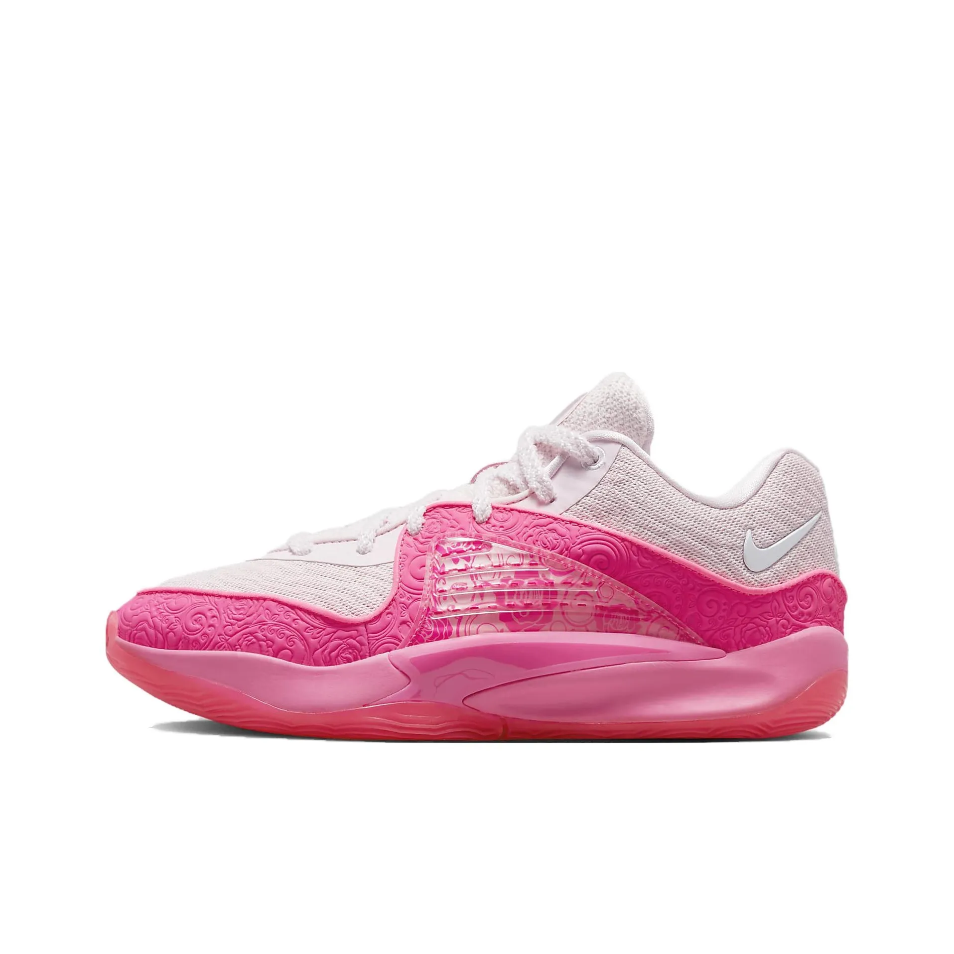 To verify the authenticity of the Nike KD 16 NRG EP 'Aunt Pearl', inspect the shoe's appearance. Authentic pairs will have a consistent pink and white color scheme, with no fading or discoloration. The materials should feel premium, and the stitching should be tight and even.