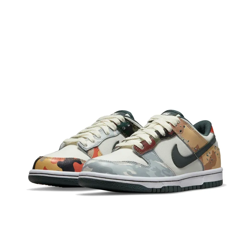 The Nike Dunk Low Sail Multi-Camo should have a well-defined camouflage pattern. Authentic pairs will have a consistent color distribution and the synthetic leather should feel premium. Inspect for any irregularities in the design.