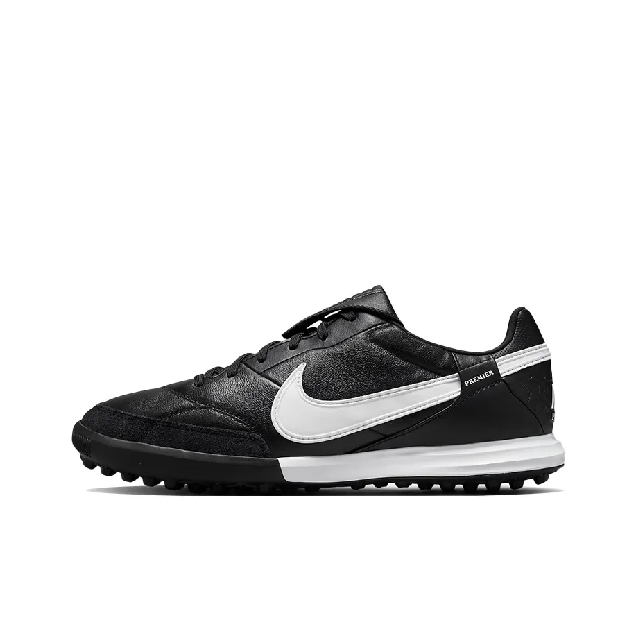 To verify the Nike Premier 3 Tf 'Black', inspect the upper material and stitching. Authentic pairs feature high-quality cow split leather with precise stitching. The overall design should be sleek, with no visible flaws or inconsistencies.