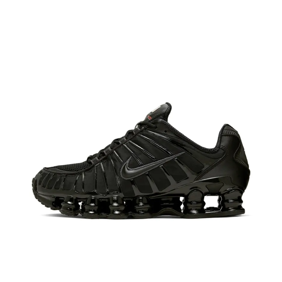 For the Nike Shox TL Black Metallic Hematite, inspect the shoe's overall finish. Authentic pairs exhibit a flawless surface with no discoloration or imperfections. The rubber sole should have a consistent texture, and the Shox technology should be visibly integrated into the design.