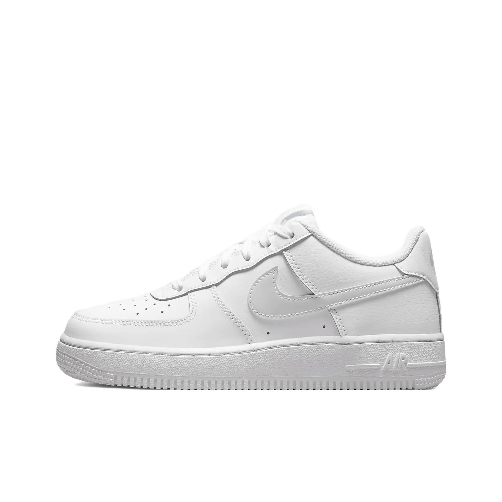 To identify the authenticity of the Nike Air Force 1 Low White Aura GS, inspect the leather quality and stitching. Authentic pairs will have a smooth finish with no imperfections. The color should be a pure white, with no discoloration.