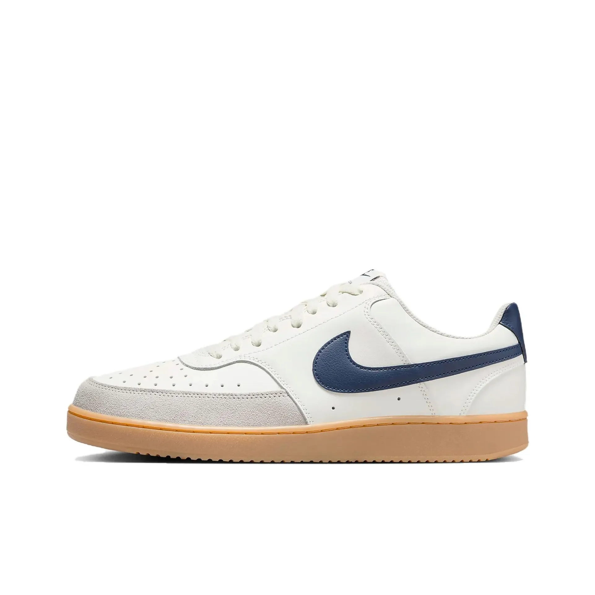 For the Nike Court Vision 1 Low Beige Blue Burgundy, check the shoe's overall appearance for quality. Authentic pairs will have a consistent color scheme and high-quality materials. The stitching should be tight and uniform, with no signs of glue residue. The toe box should maintain its shape, and the laces should be durable and properly threaded.