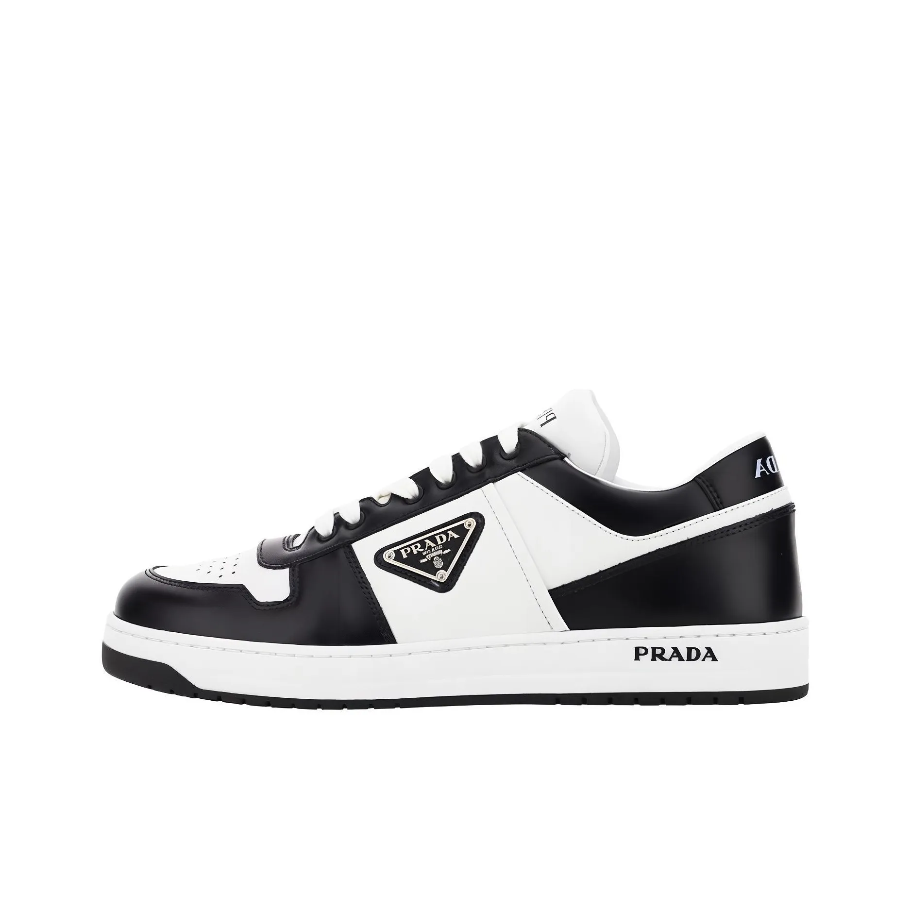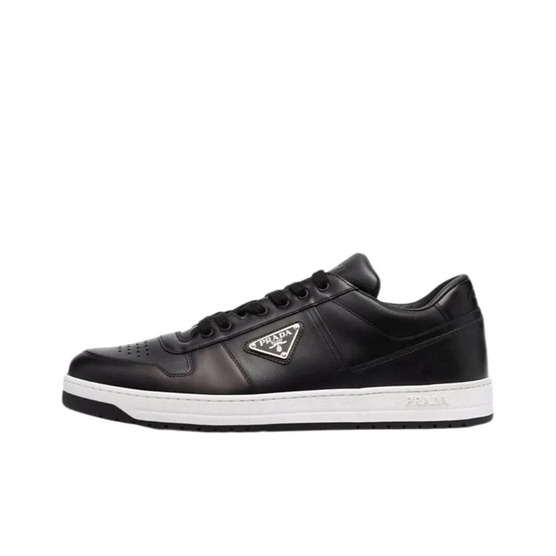 PRADA Downtown Low Top Sneakers Leather Black Black White