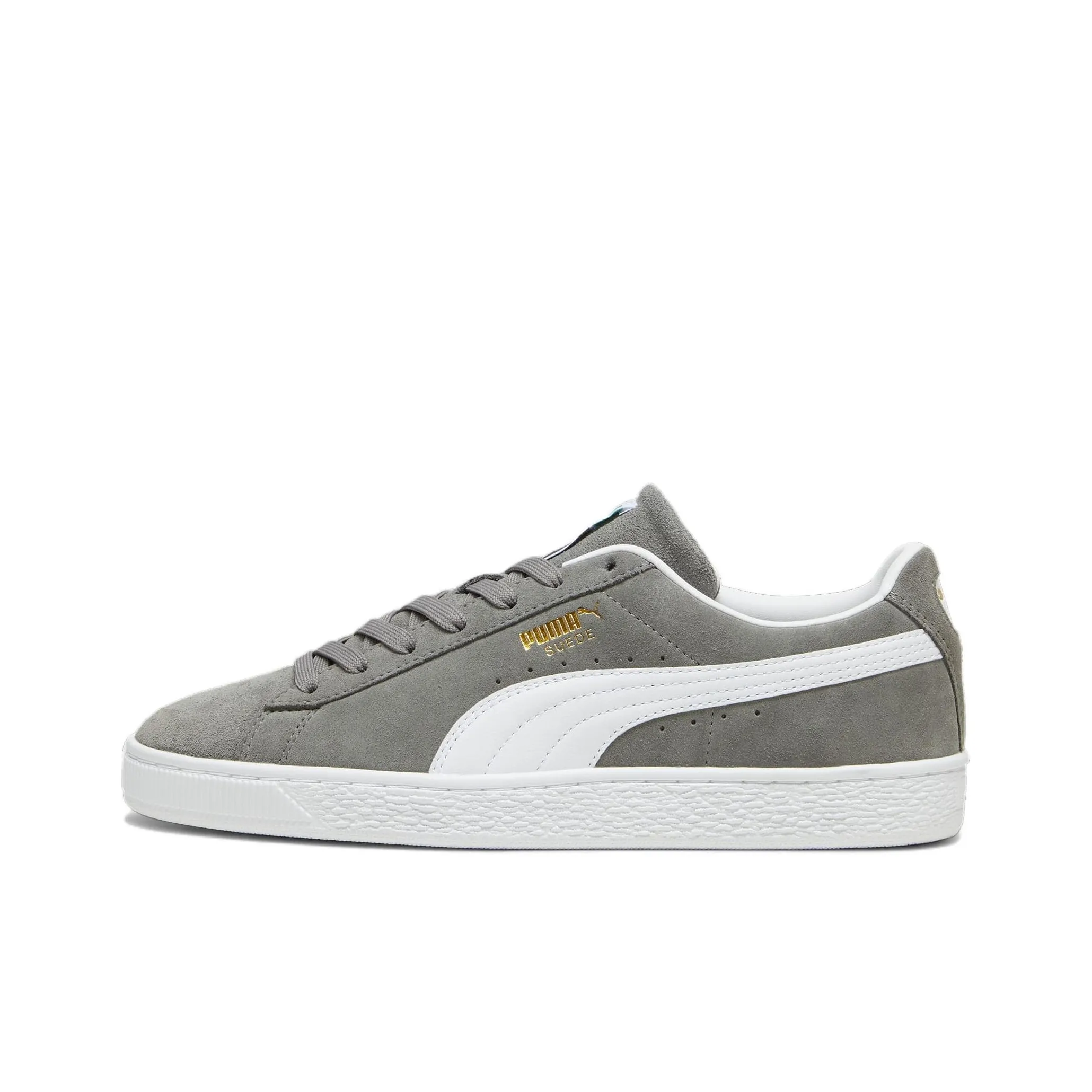 To verify the authenticity of the PUMA Smash Suede Grey, examine the stitching and overall craftsmanship. Authentic pairs feature clean, even stitching without loose threads. The suede should have a consistent texture and color, with the PUMA logo clearly embossed on the side. Check the sole for proper branding and ensure it has a solid grip pattern.