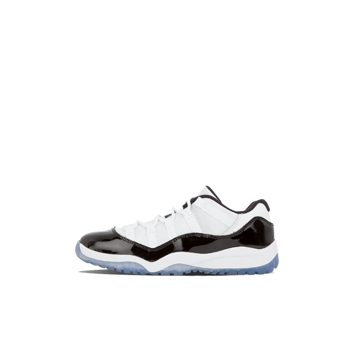 For the Jordan 11 Retro Low Concord GS, check the overall construction and materials. The white upper should be clean and free of defects, with a consistent color throughout. The rubber sole should have a proper tread pattern, and the shoe should feel lightweight yet sturdy.