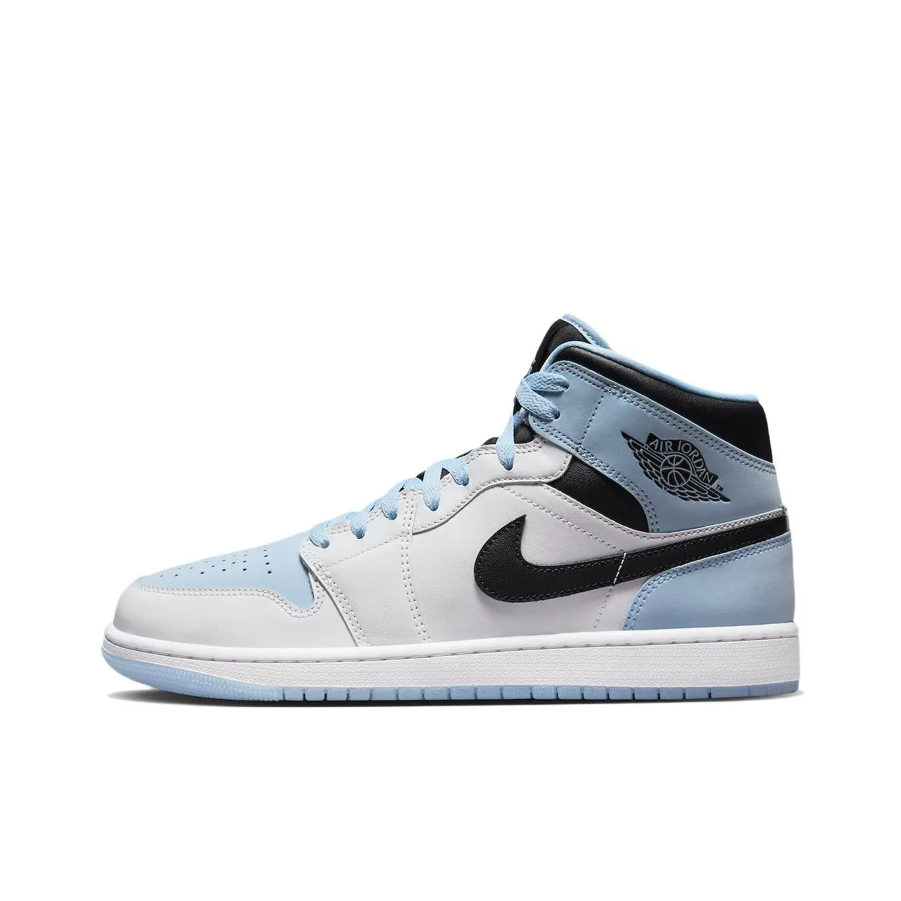 For the Jordan 1 Mid Se Ice Blue 2023, inspect the overall shape and color. Authentic pairs maintain a consistent silhouette and the blue should match the official colorway, with no fading or discoloration.