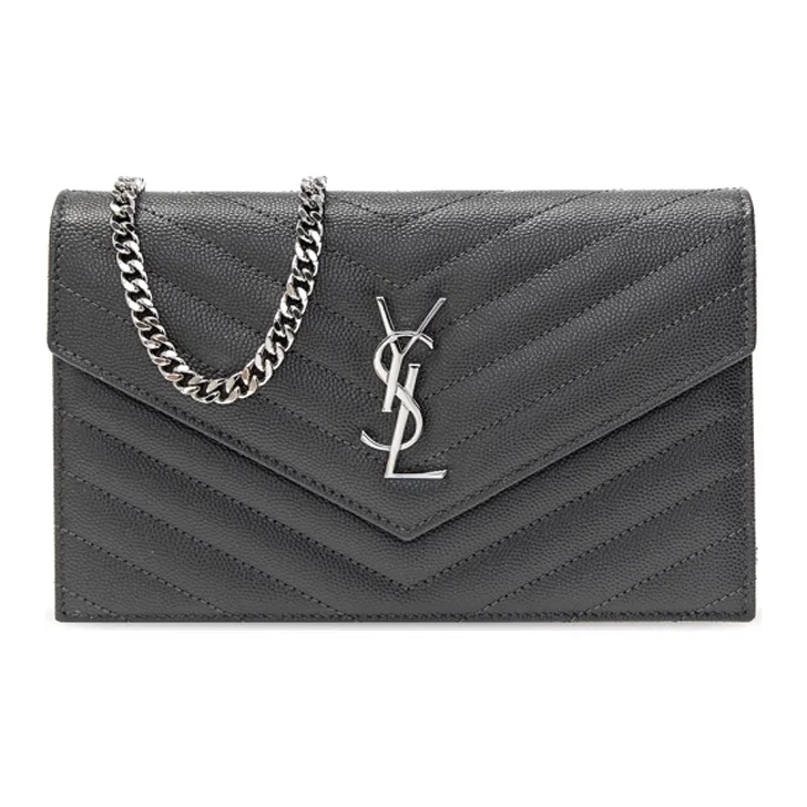 SAINT LAURENT Leather Wallet, Envelope Bag, Shoulder Bag, Crossbody Bag Women's Gray White