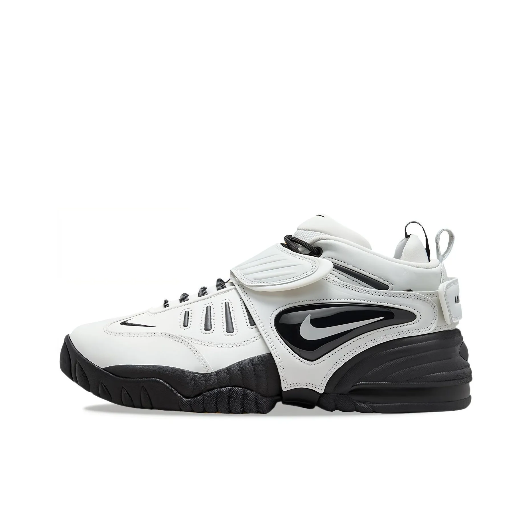 To verify the authenticity of the Nike Ambush X Air Adjust Force 'Summit White', check the sole material and overall construction. Authentic pairs have a structured silhouette with high-quality materials. The stitching should be even, and the design elements should be present and correctly placed.