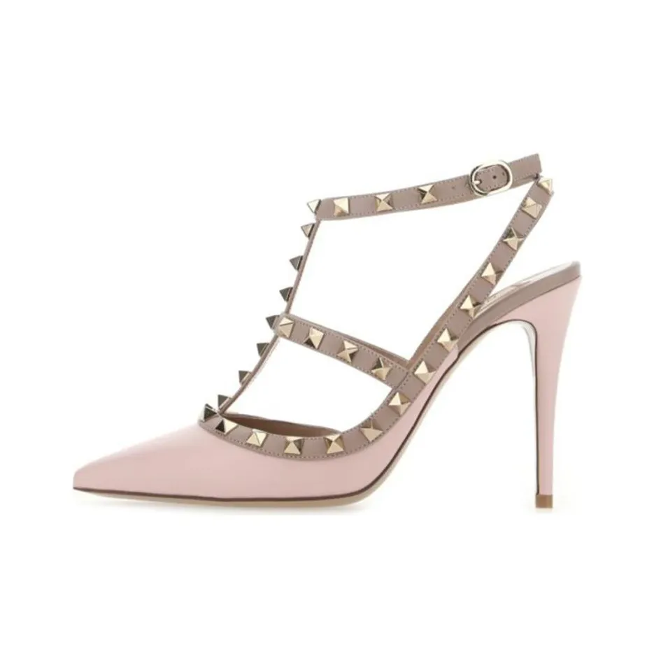 For the Valentino Rockstud High Heels in Pink, authenticity can be determined by examining the shoe's craftsmanship. The leather should be of high quality, with a smooth finish and no imperfections. The studs must be evenly placed and securely attached, showcasing the brand's commitment to detail. The overall shape should be elegant, with no irregularities.