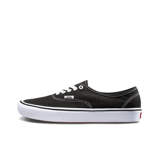 To authenticate the Authentic ComfyCush Vans 'Black', examine the shoe's appearance. Authentic Vans should have a consistent color and texture, with no signs of wear or fading. The stitching should be precise, and the sole should have the classic waffle pattern, indicating genuine craftsmanship.