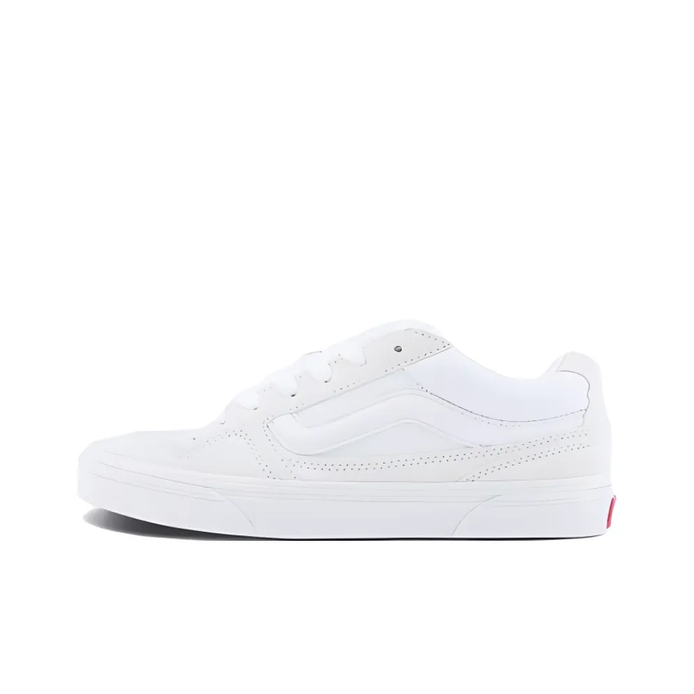 To verify the authenticity of the Old Skool Vans 'True White', inspect the canvas material for quality. Authentic pairs will have a smooth finish with no fraying or discoloration. The stitching should be even and tight, and the round tip should maintain its shape. The sole should have the classic Vans waffle pattern, ensuring durability and grip.